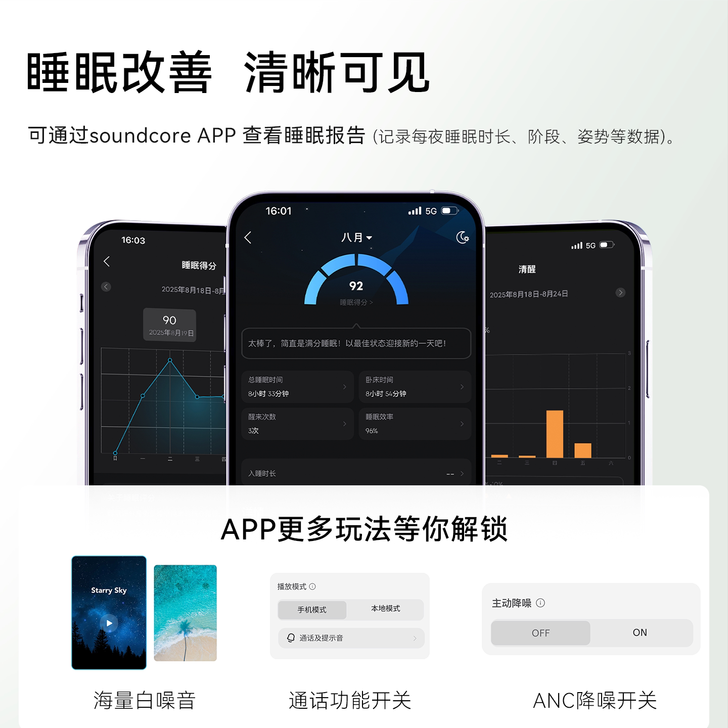 声阔A30睡眠耳机深睡舱可侧睡主动降噪蓝牙无线专用AI智能遮鼾