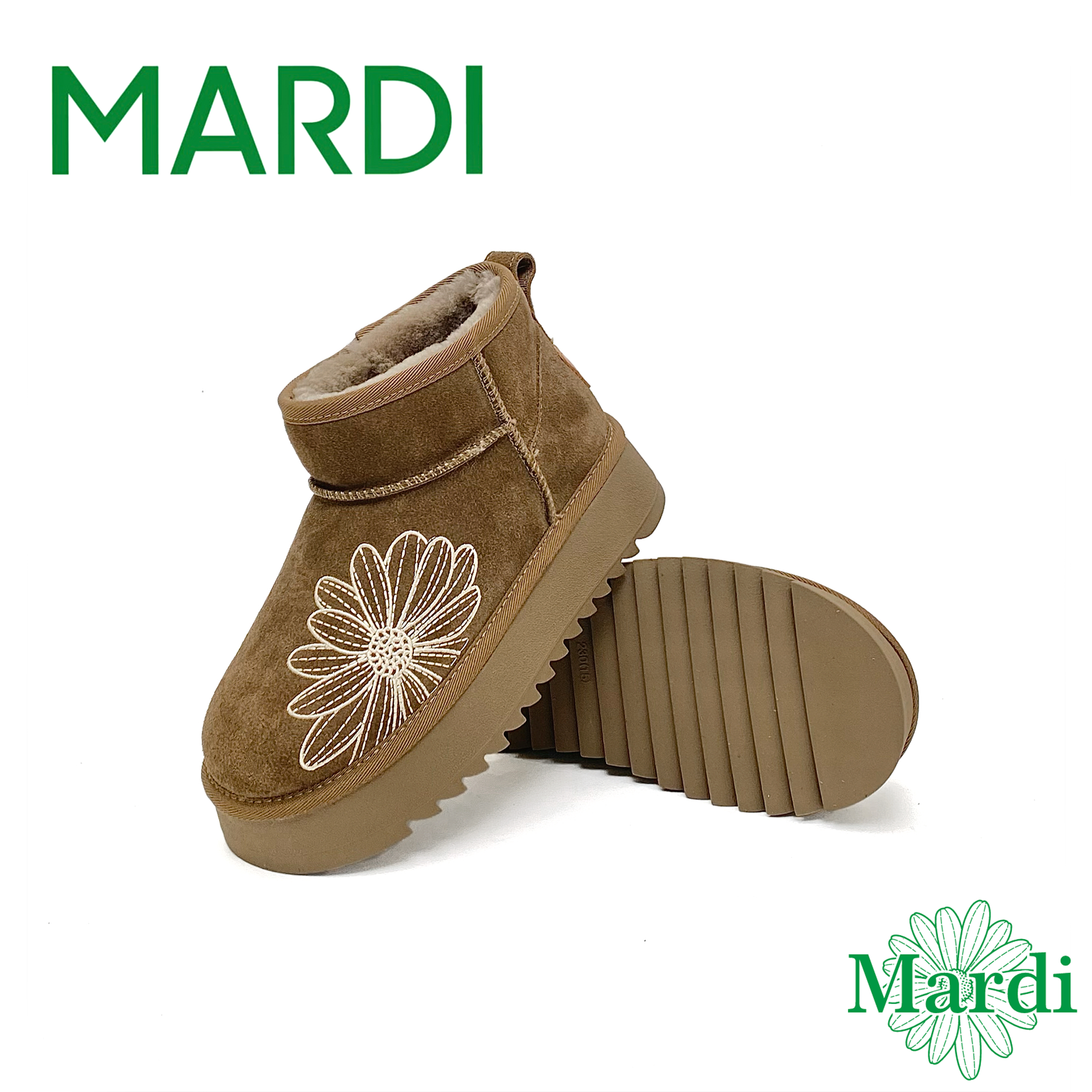 MARDI厚底雪地靴女冬季小雏菊刺绣加绒保暖棉鞋增高靴