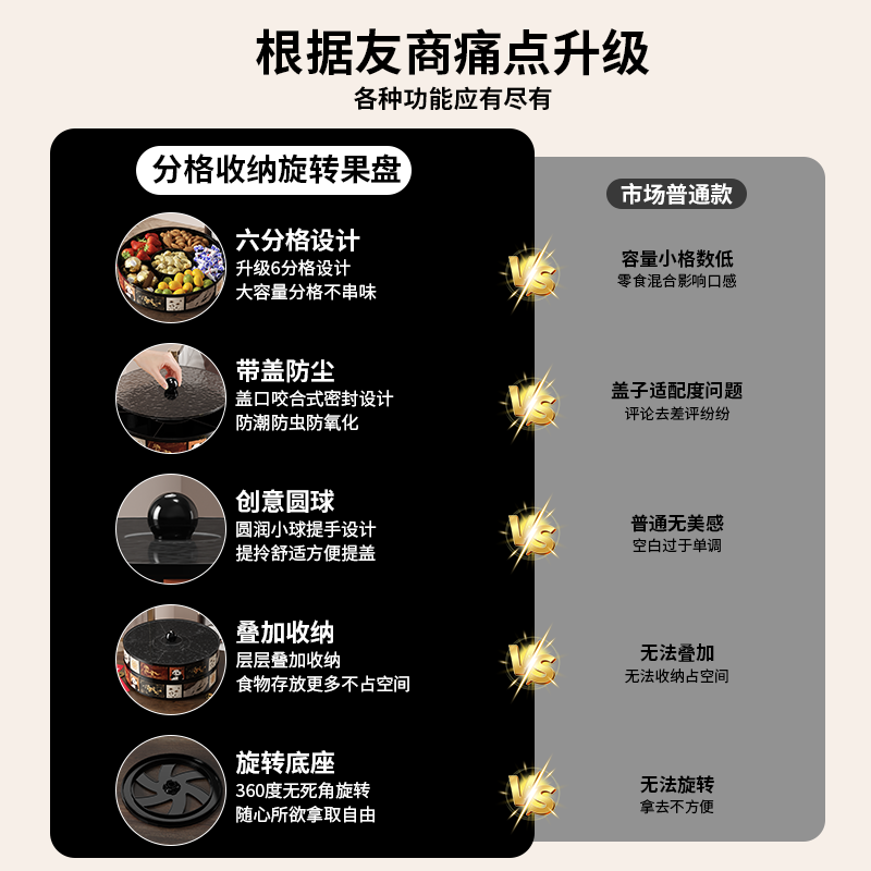 干果盘客厅茶几家用坚果盘零食摆放盘分格瓜子收纳盒桌面零食盒妙