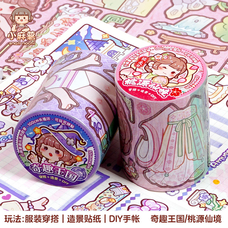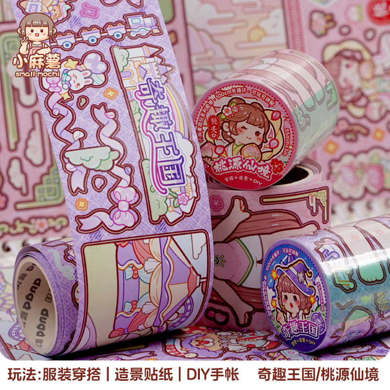 duga多加小麻薯胶带新款整卷胶带桃源仙境贴纸女孩儿童手账和纸胶带手帐素材贴画装饰小图案高颜值换装贴纸