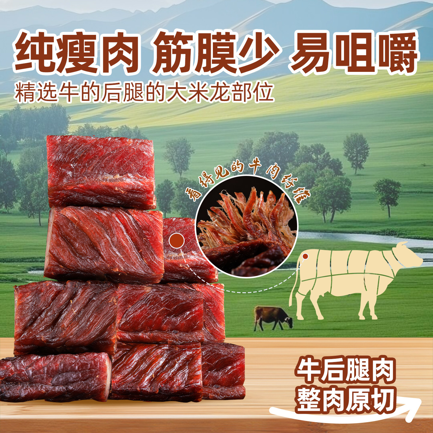 1号牧场手撕牛肉内蒙古风干牛肉干正宗草原特产健身零食250g散称