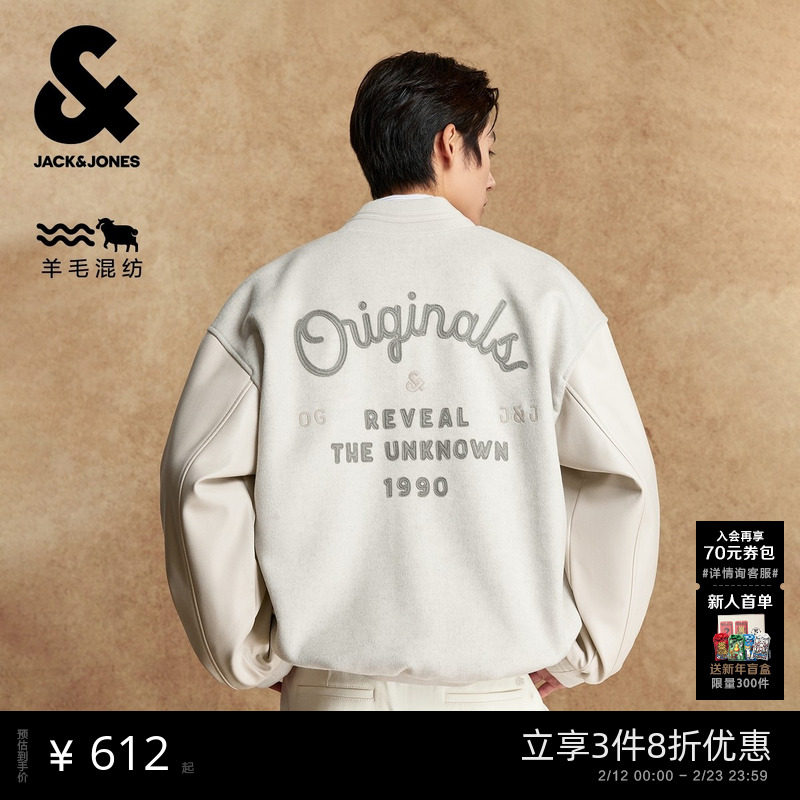 杰克琼斯2025年秋冬新款男装毛呢大衣时尚百搭外套贴布刺绣上衣