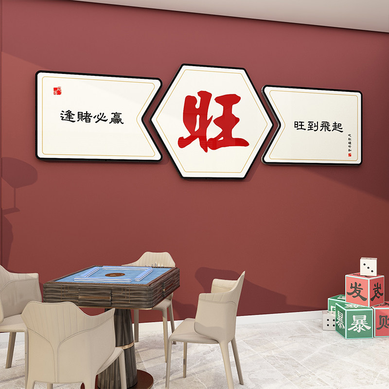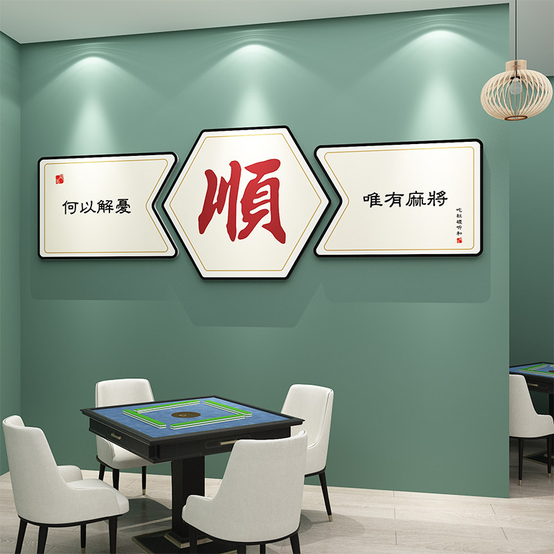 棋牌室装饰画麻将馆背景墙面创意贴纸挂画网红麻雀棋艺房包厢壁画