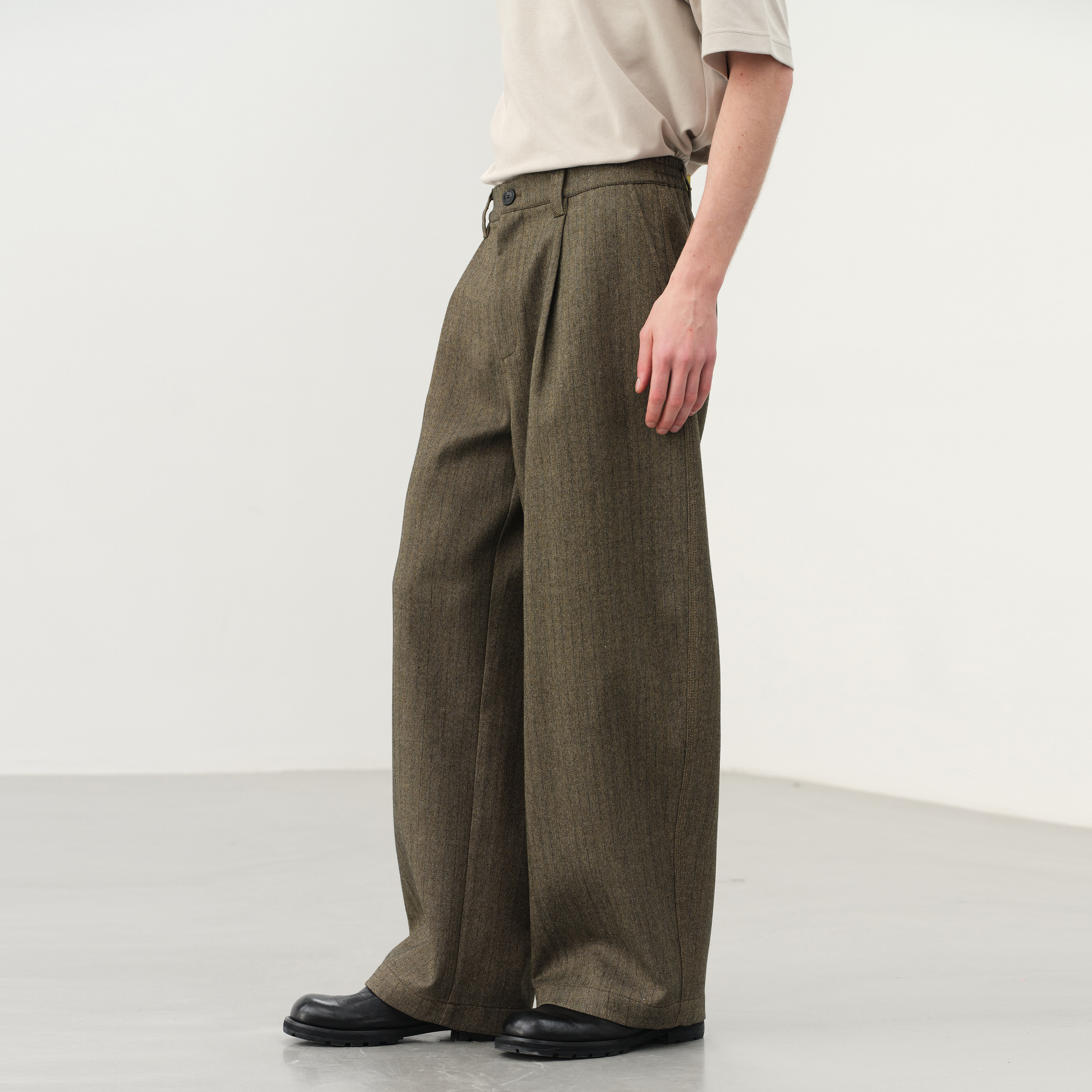 LR MADE 25SS 侧缝打褶 小弯刀垂感 碳磨洗水纯棉休闲廓形长裤