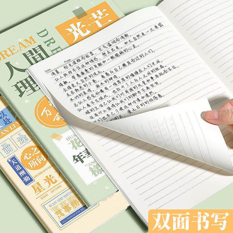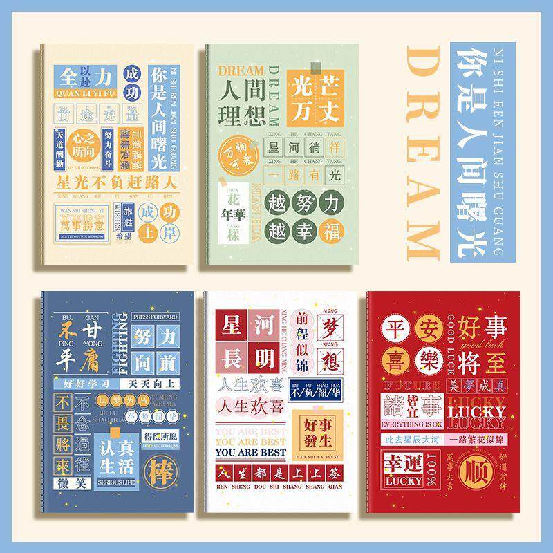 B5加厚车线笔记本A5励志文字记事本练习本初高中学生横线本子加厚中国风高颜值作业本ins风复古大本子