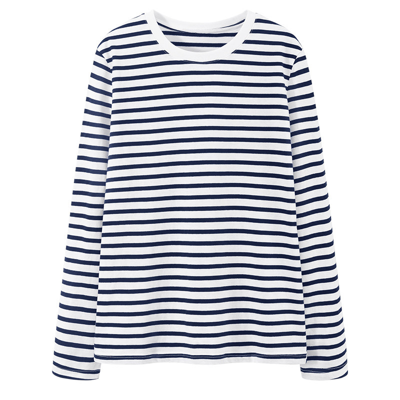 都市丽人长袖t恤女春季2026新款纯棉条纹打底衫韩式慵懒chic上衣Y