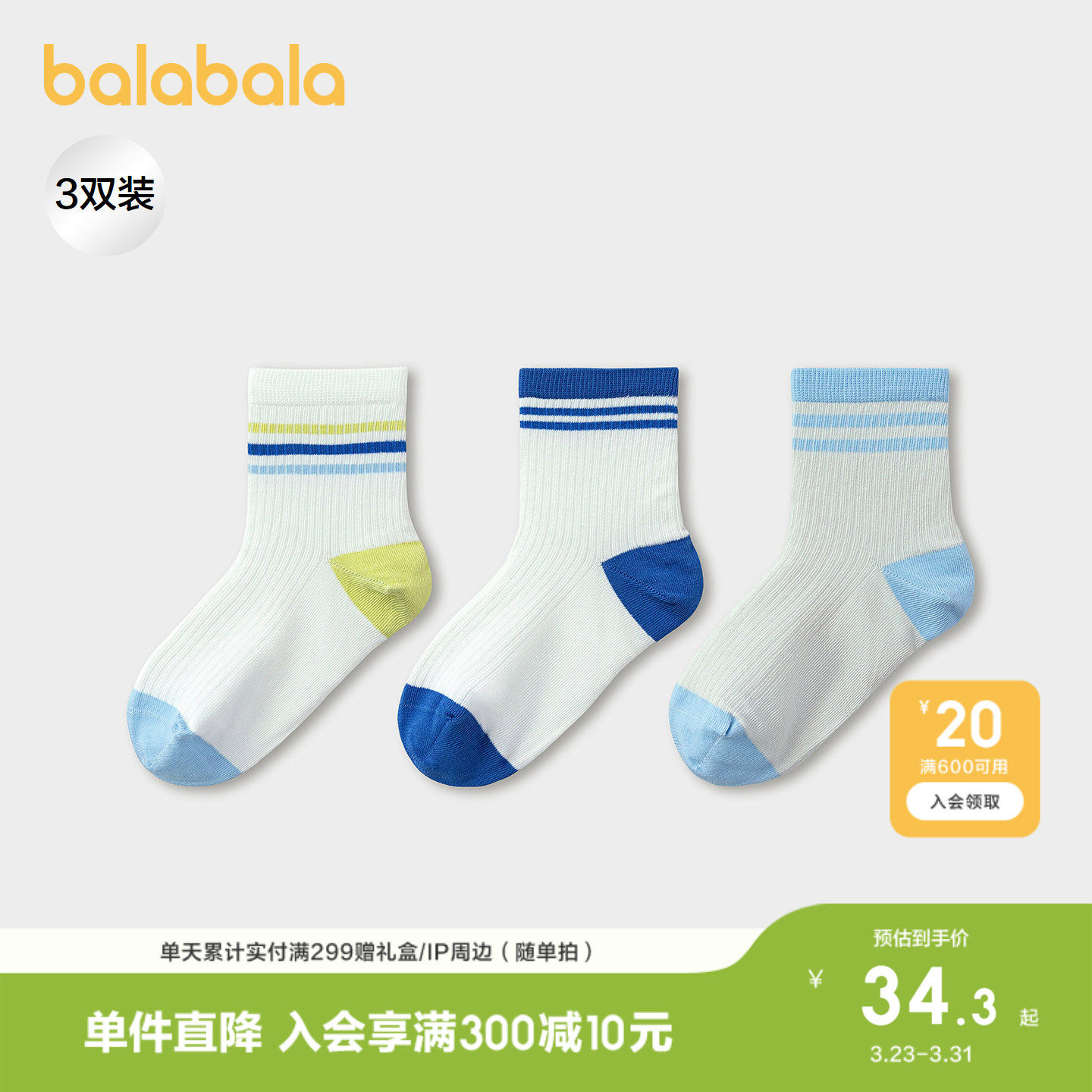【商场同款】巴拉巴拉儿童袜子夏季网眼袜透气薄男童学生袜三双装