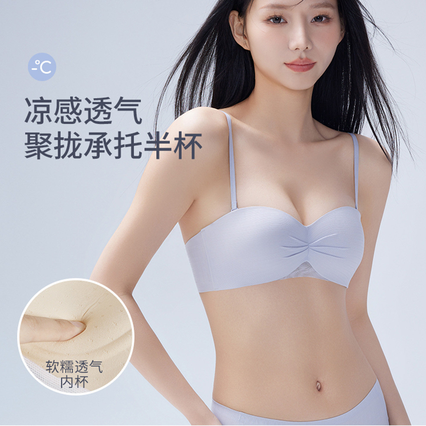 草本初色内衣女细肩带无痕夏季薄款大胸显小胸聚拢凉感无钢圈文胸