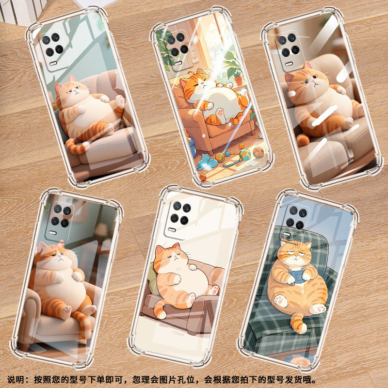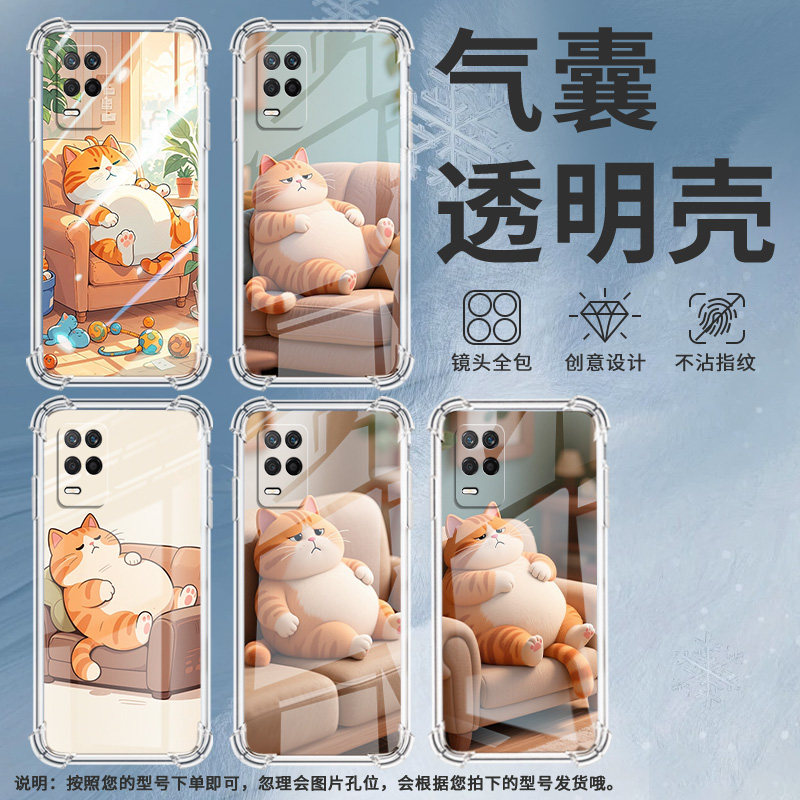 适用RealmeX手机壳RealmeX青春版全包边RealmeXT慵懒的橘猫RealmeX2气囊壳真我X2Pro高级感潮流防摔保护套