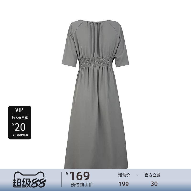 三福短袖连衣裙2026新款夏季简单大方收腰V字翻领长裙女装517904