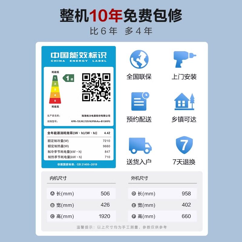 海尔空调1.5匹家用一级能效变频冷暖卧室壁挂式挂机超省电旗舰店