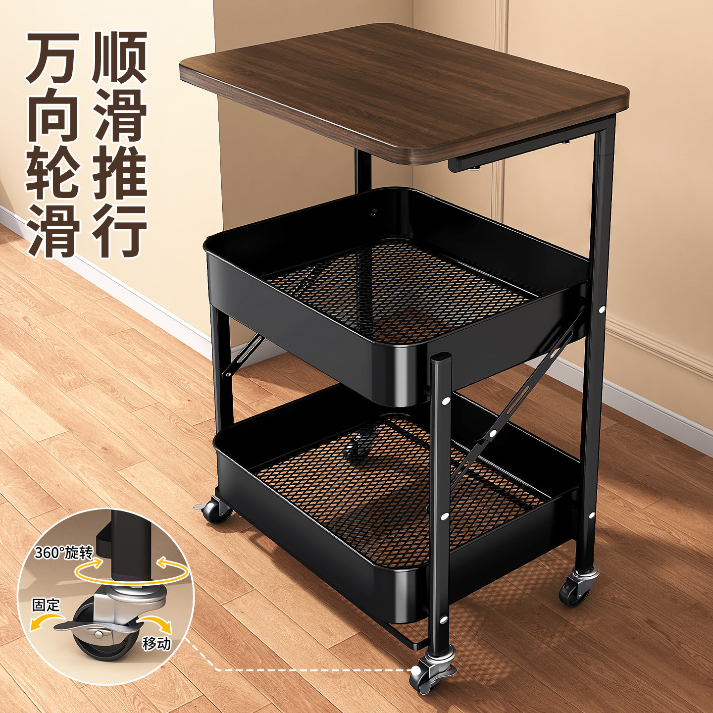 小推车置物架落地多层零食收纳架可折叠储物架可移动沙发边几茶几