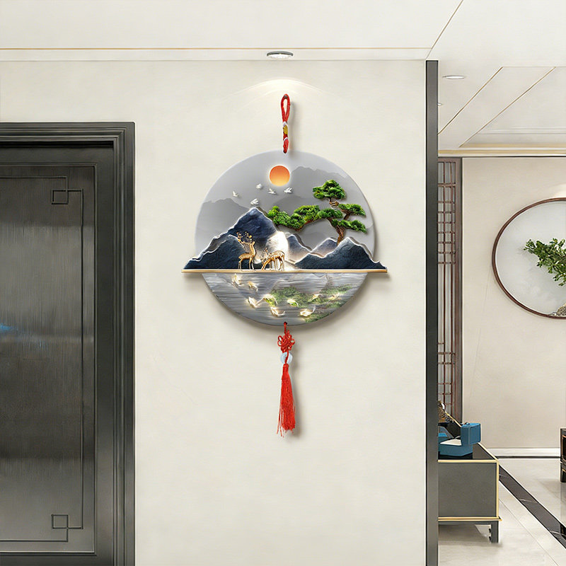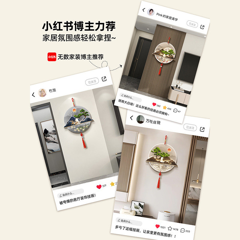 九鱼聚财轻奢挂件墙上壁挂画新中式乔迁新居挂饰装饰画圆形中国结