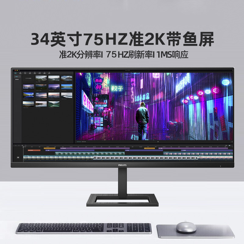 飞利浦342E2E 34寸2K直面292E2E带鱼屏显示器可升降分屏内置音箱