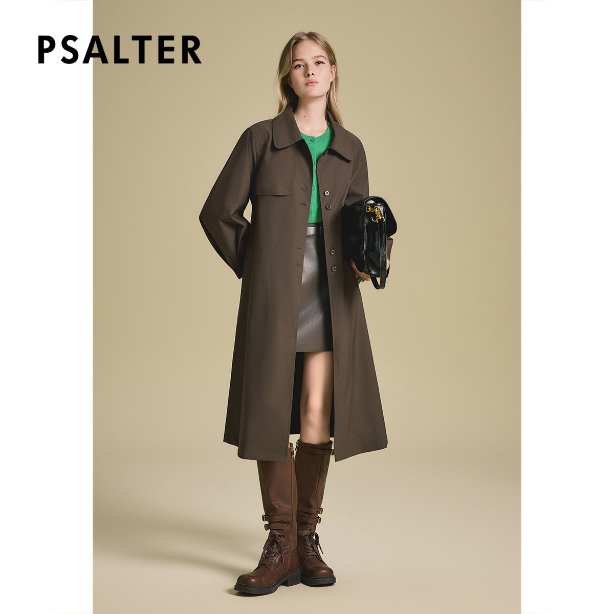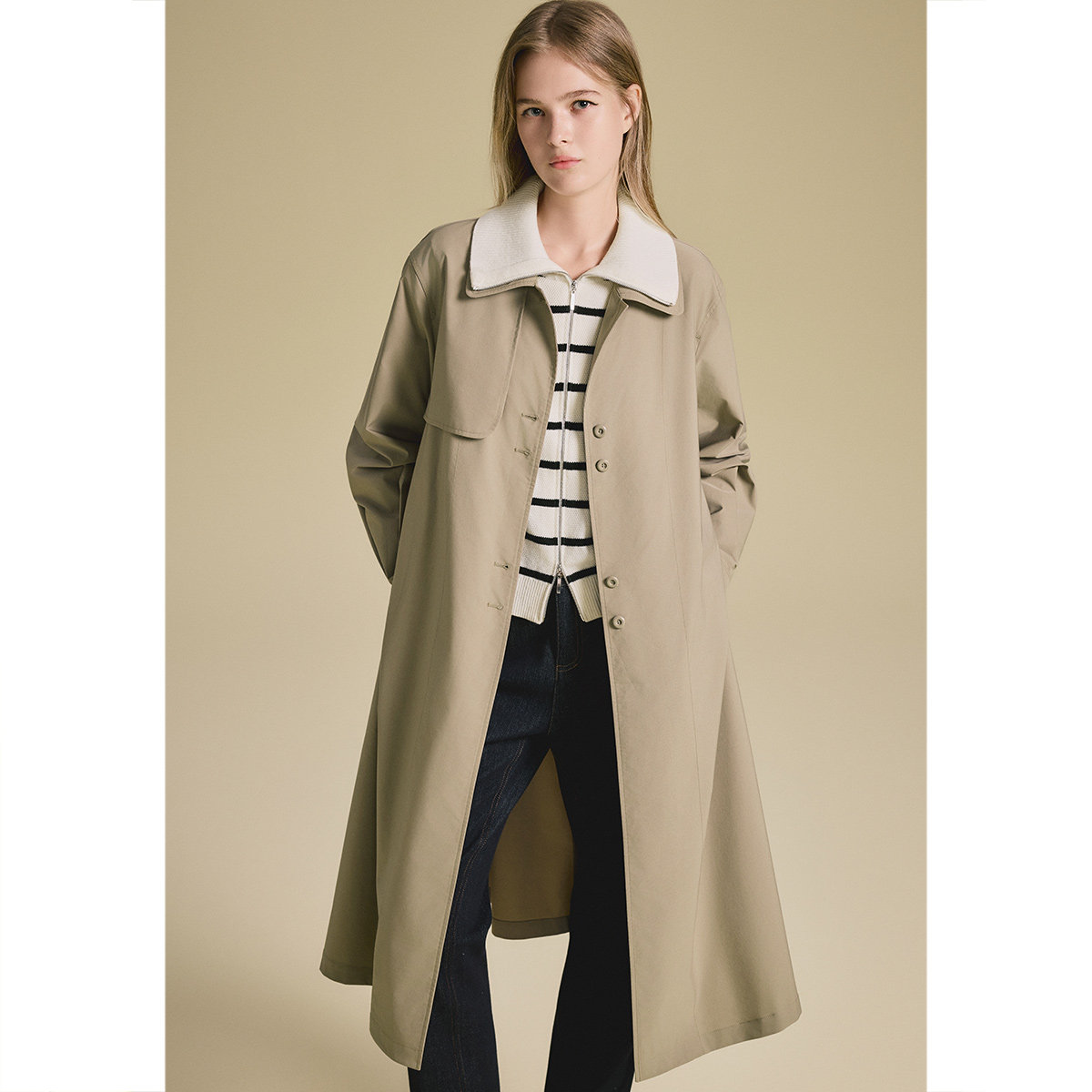 诗篇专选轻盈舒适宽松长款斜纹风衣外套2025秋款