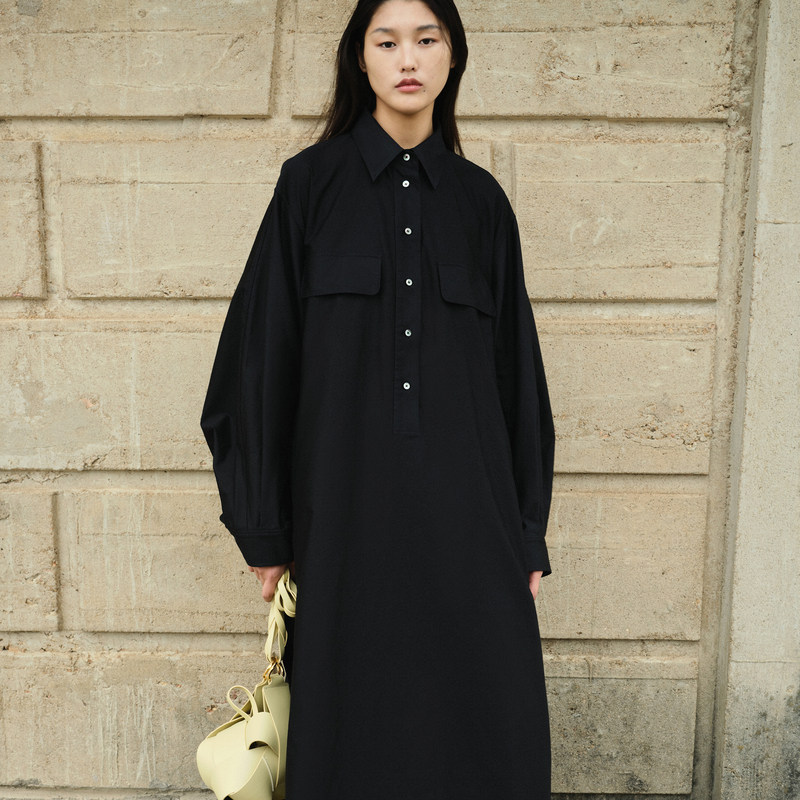 JNBY/江南布衣春秋款衬衫连衣裙女宽松简约通勤翻领A字5N8G12710