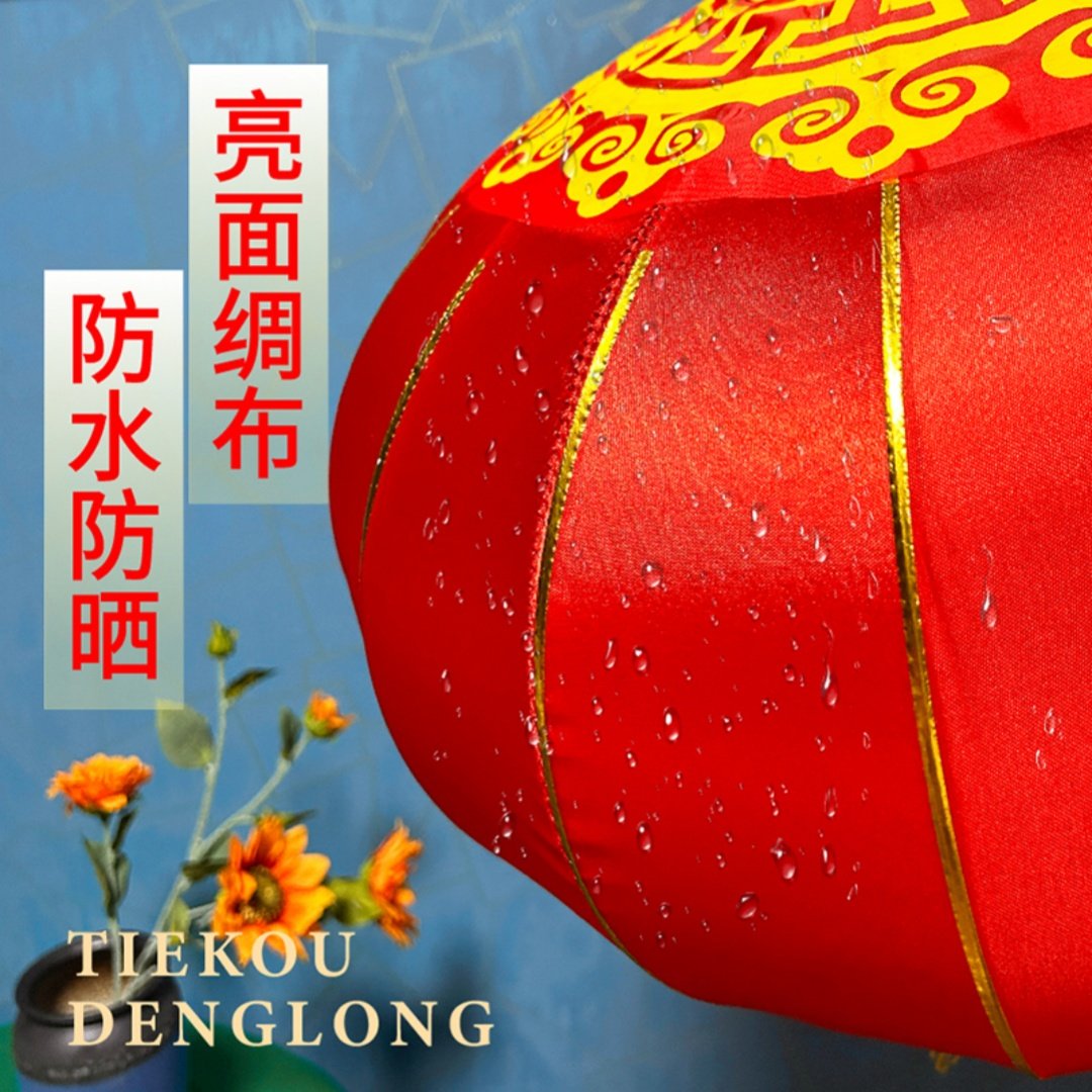 春节大红灯笼2026新款灯笼铁口绸布户外防水防晒印字喜庆装饰灯笼
