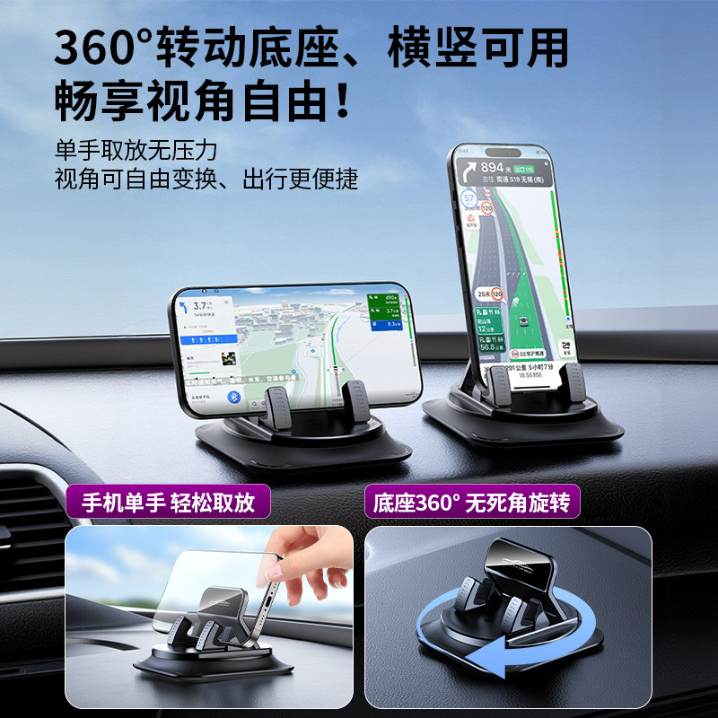 车载手机架导航支架墨镜眼镜支架可旋转耐高温中控台车摆件停车牌