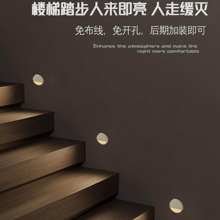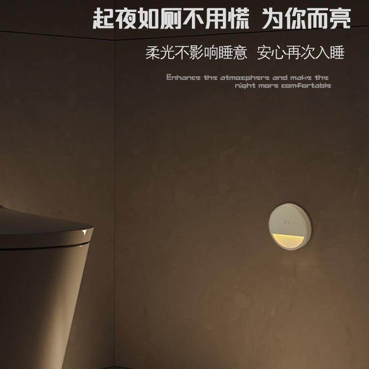 圆形智能感应小夜灯雷达感应灯充电壁灯LED楼梯免布线磁吸地脚灯