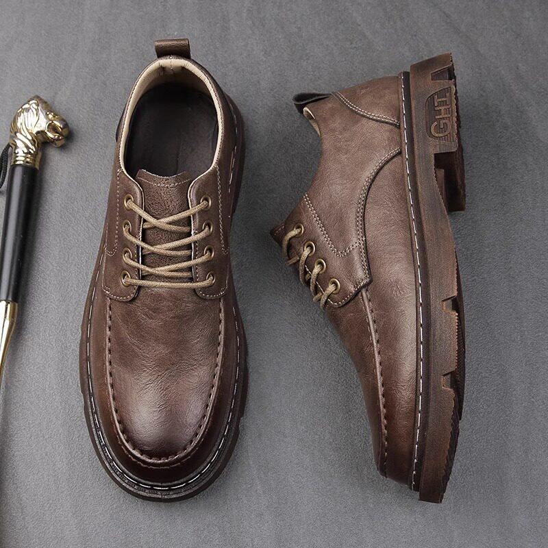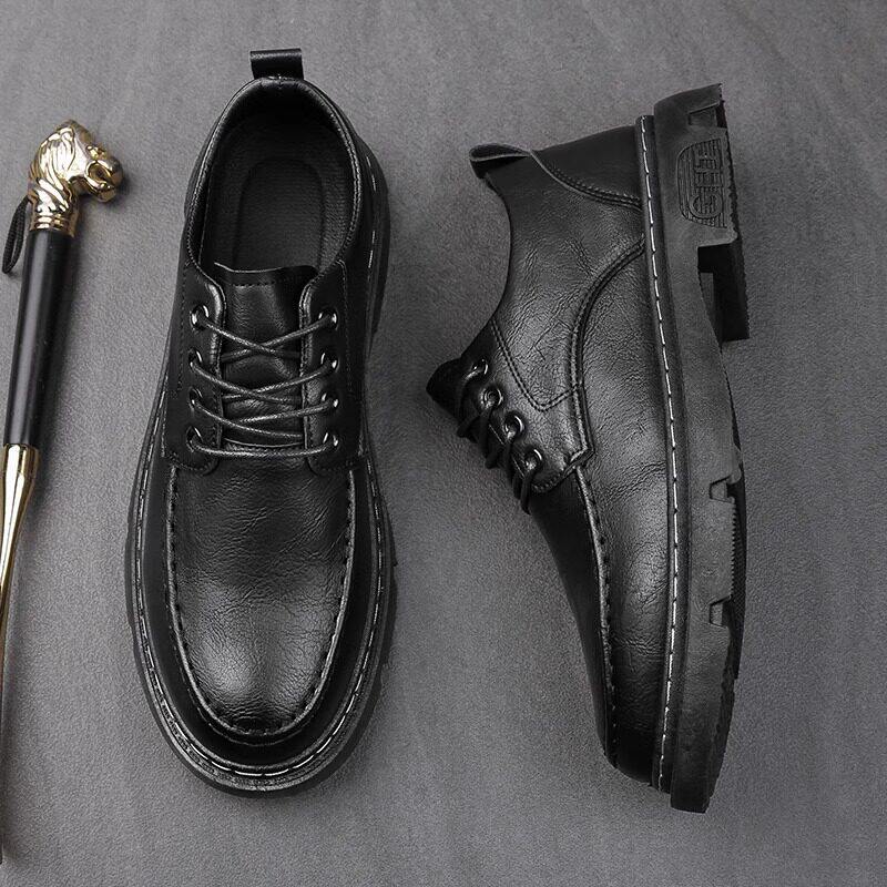 皮鞋男款高级感厚底增高英伦通勤大头德比鞋男冬季新款低帮马丁靴