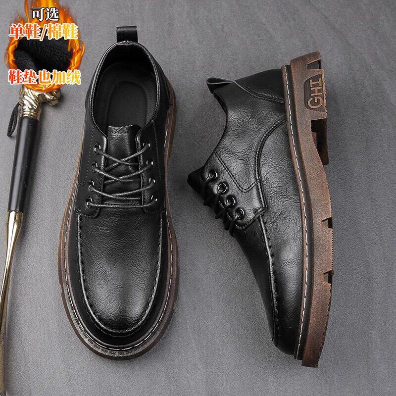 头层牛皮男鞋2025新款运动鞋英伦加绒皮鞋男士真皮休闲鞋厚底鞋子