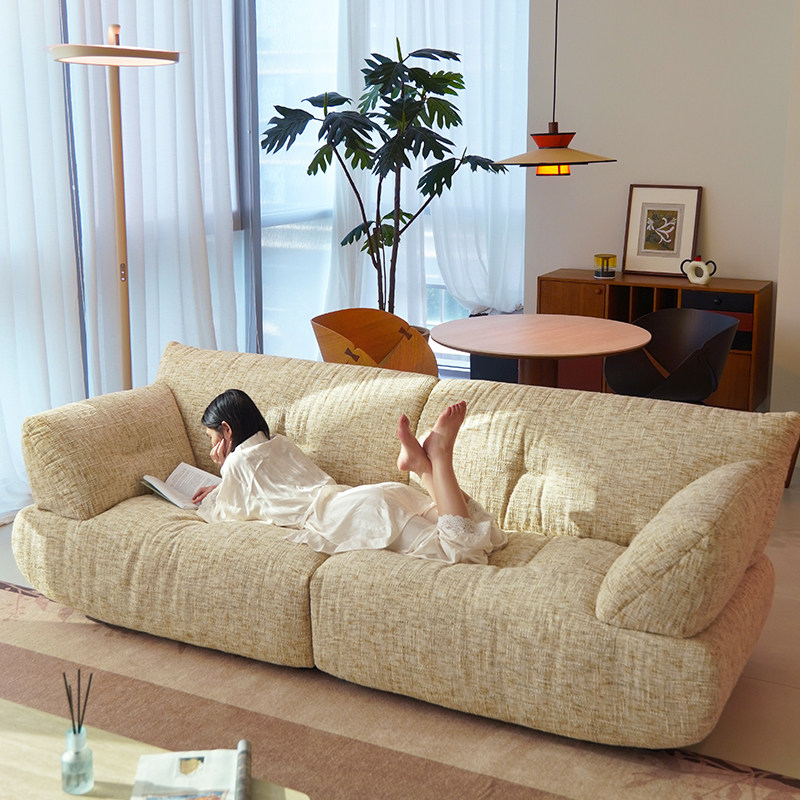 奶油风饼干沙发客厅现代简约公寓出租房小户型泡芙直排布艺沙发
