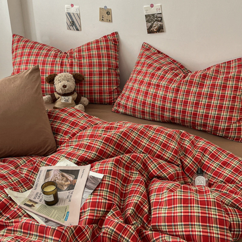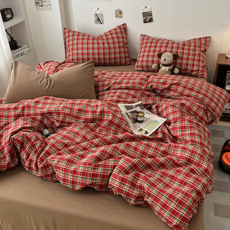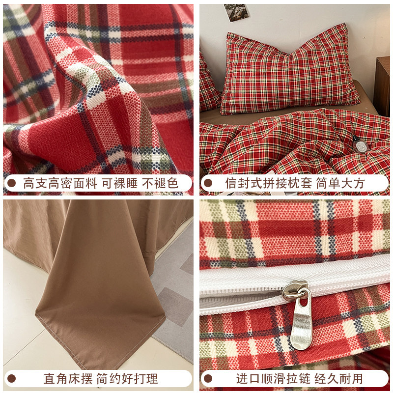 A类床上四件套纯棉全棉2025新款复古格子被套床单宿舍床品三件套4