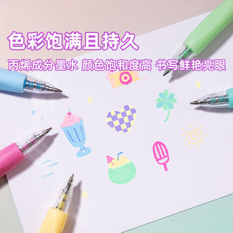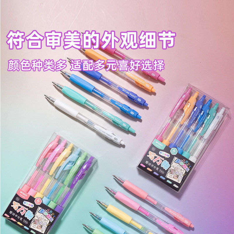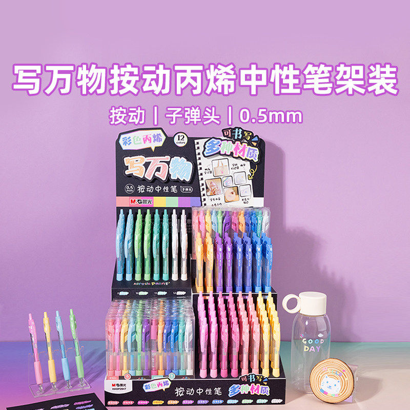 晨光按动中性笔彩色丙烯0.5mm学生用子弹头12色做笔记笔AGPUC501