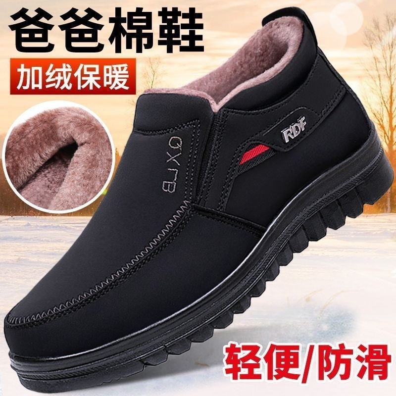 爸爸大棉鞋老北京布鞋男款冬加绒保暖防滑防水中老年男士鞋子软底