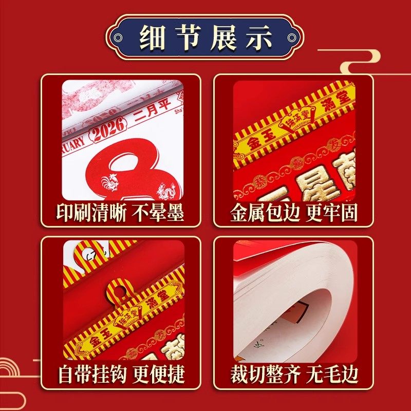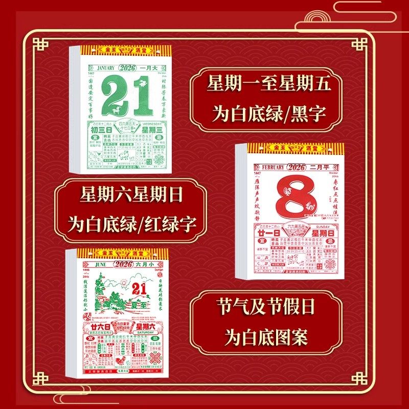马年老黄历2026年老皇历新款日历家用挂墙手撕历大号一天一页365天老年人挂历年历月历手撕通书万年历撕香港