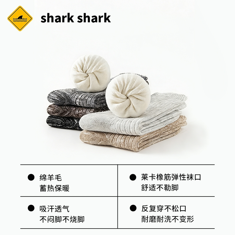 【shark鲨客】冬季保暖加厚防滑男袜简约百搭纯色秋冬日常中筒袜