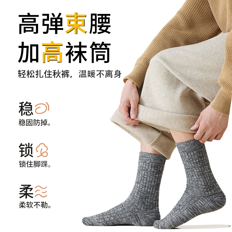 锁温保暖|蕉内热皮5系发热袜子男士中筒袜加厚棉袜长袜冬季毛圈袜