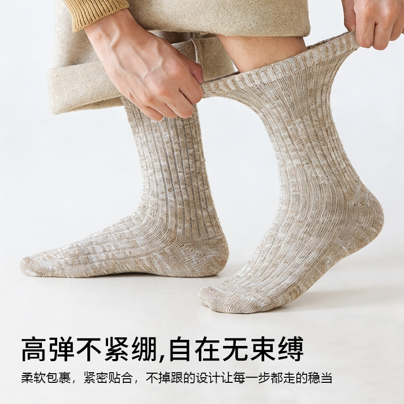 佐印3双男士袜子冬季款吸汗中筒袜文艺复古民族风防臭日系长筒袜