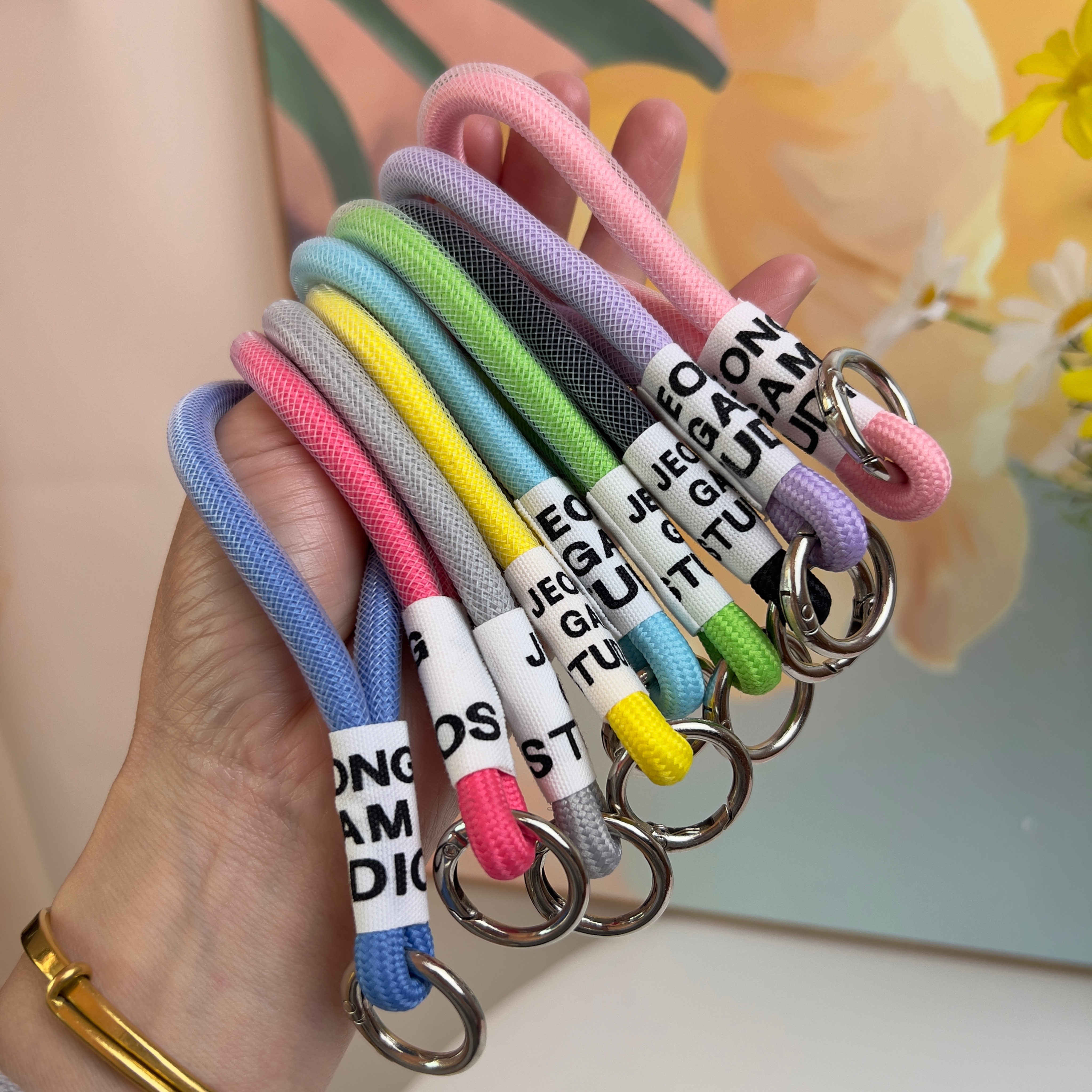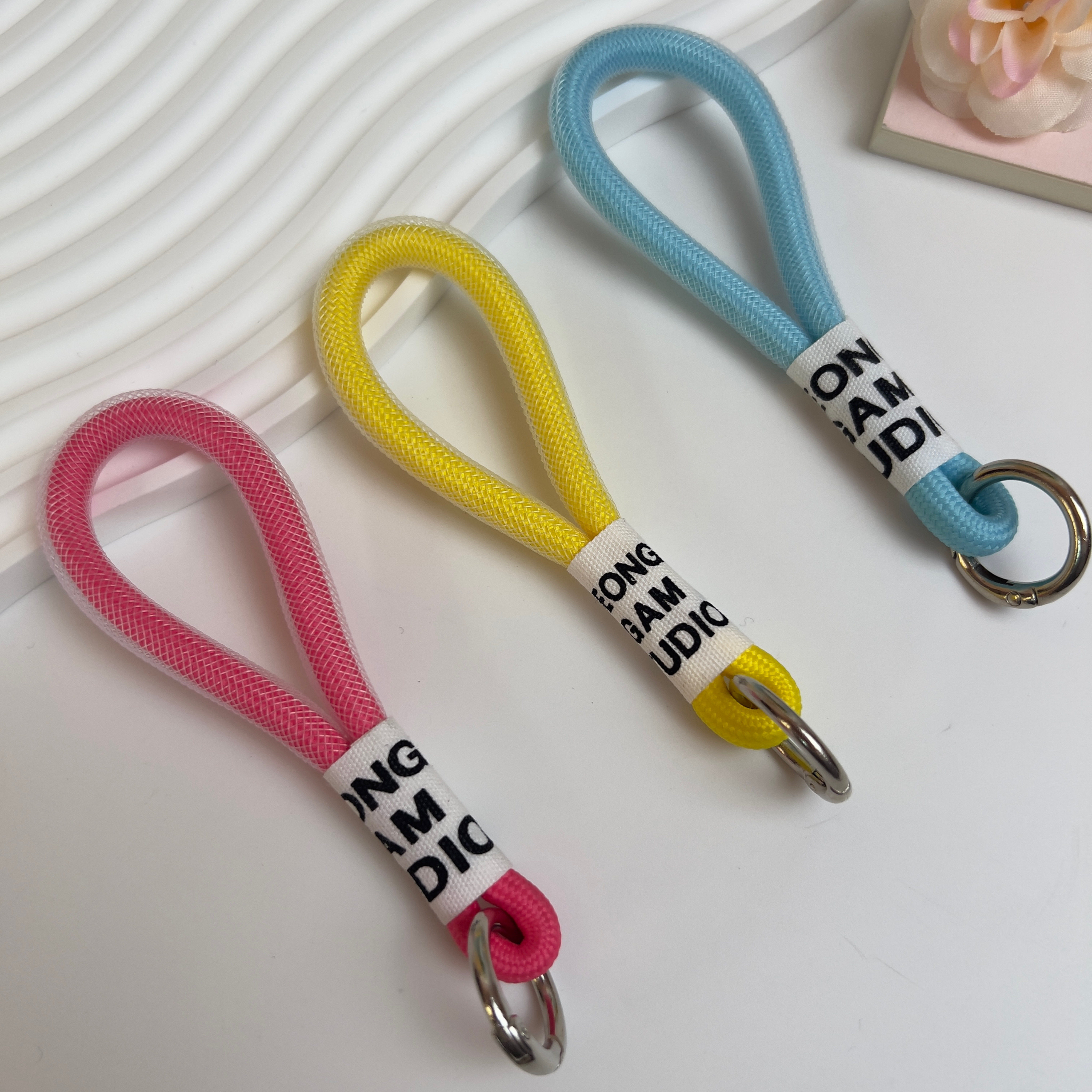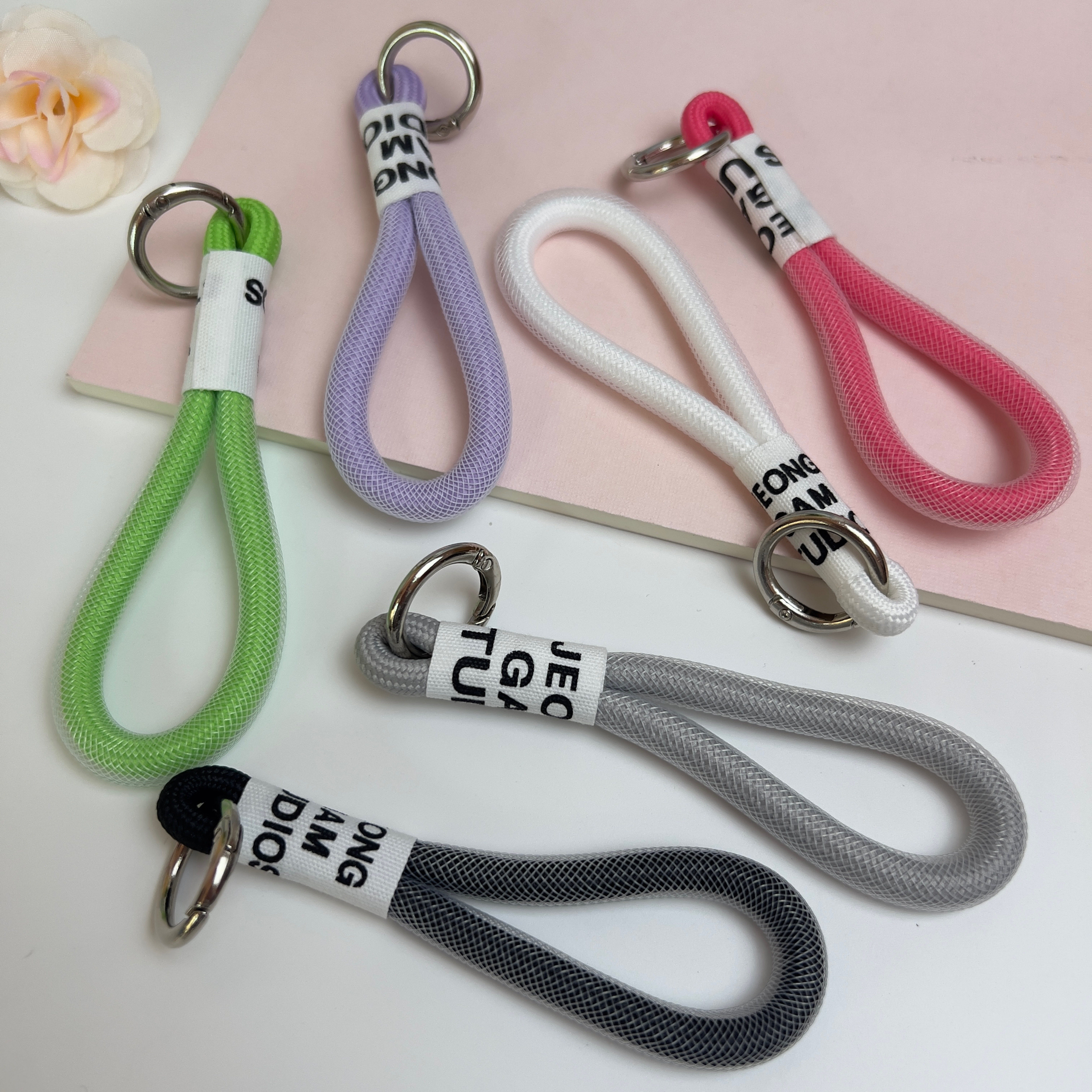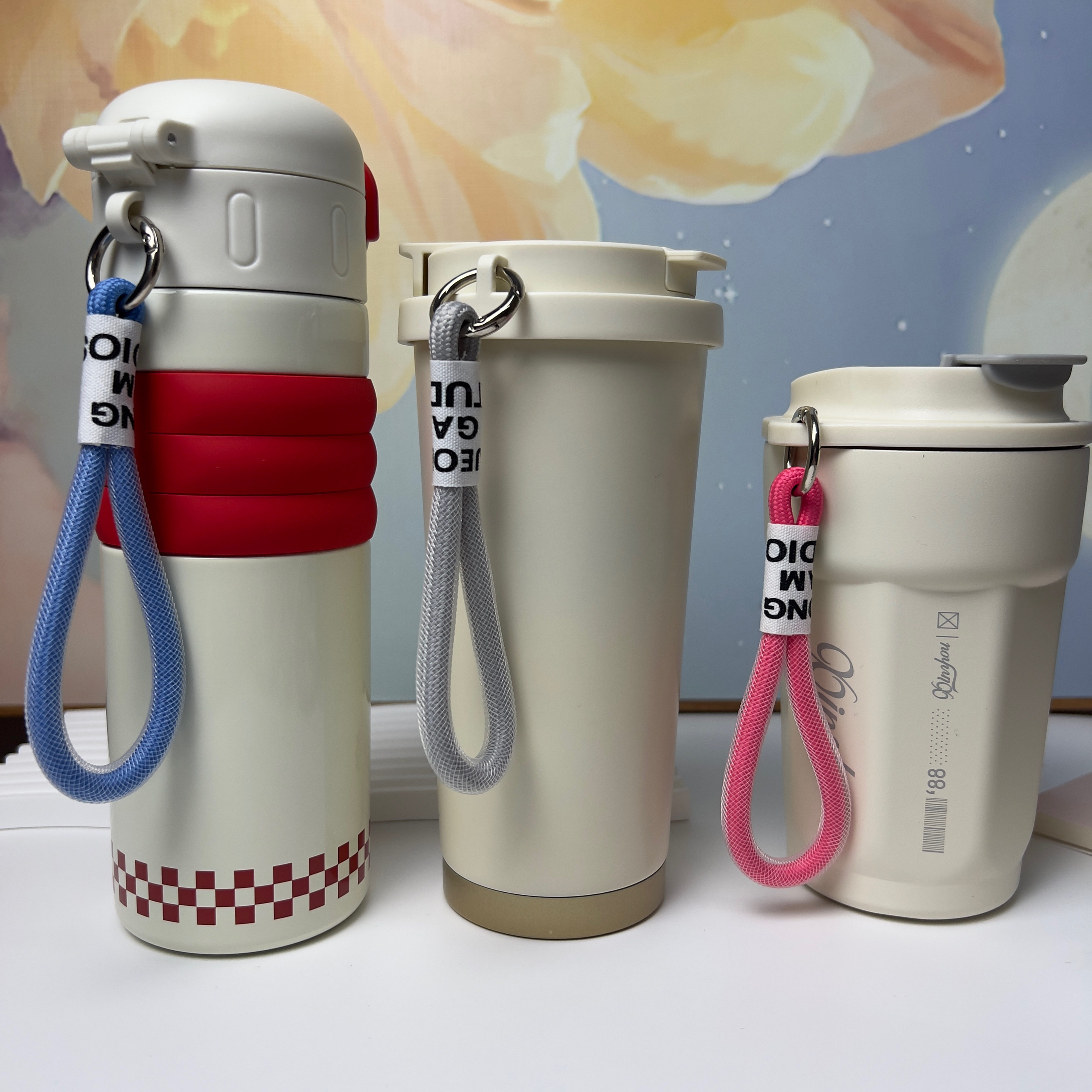 咖啡杯提绳手机彩色挂绳保温杯挂件包包钥匙扣配饰金属扣网纱提绳