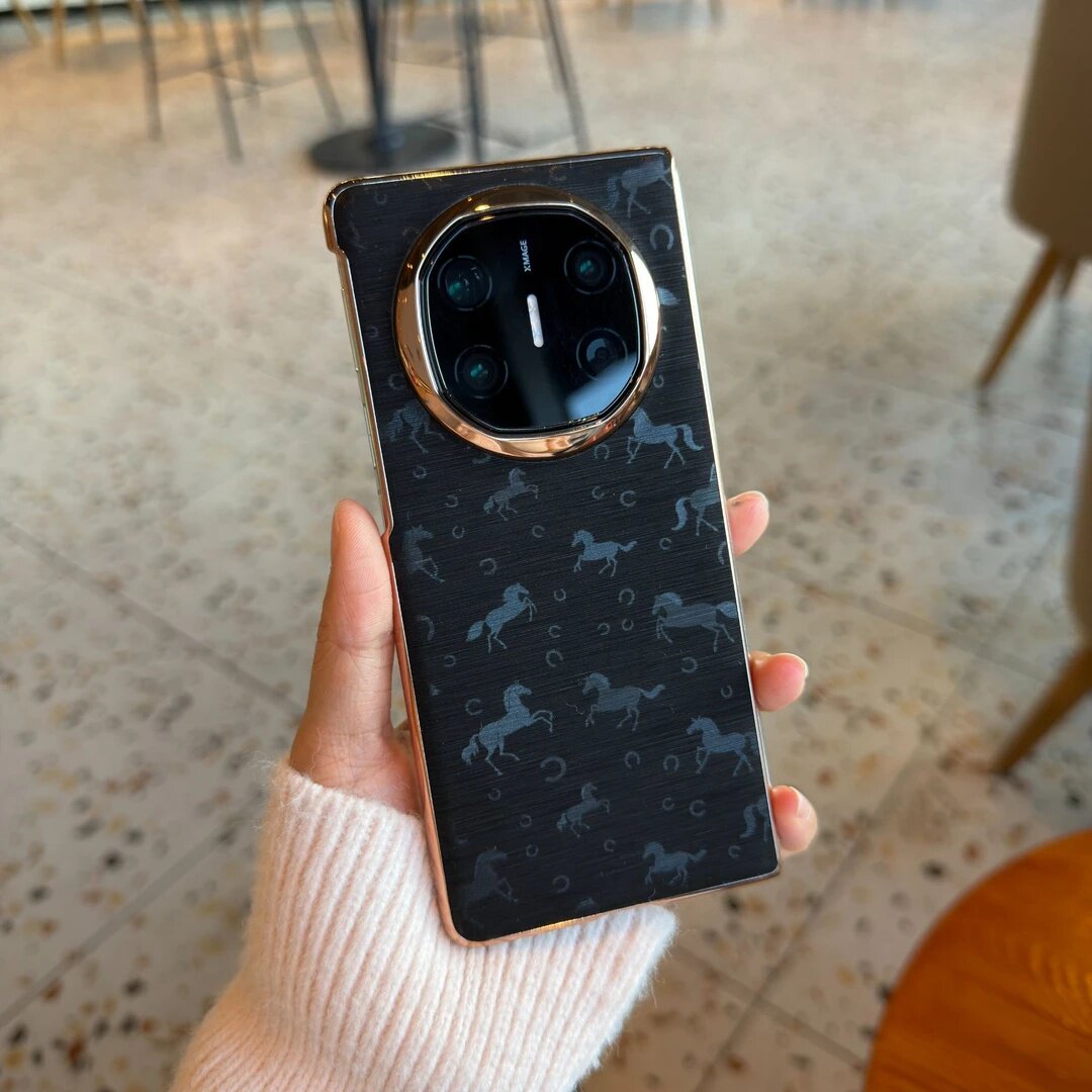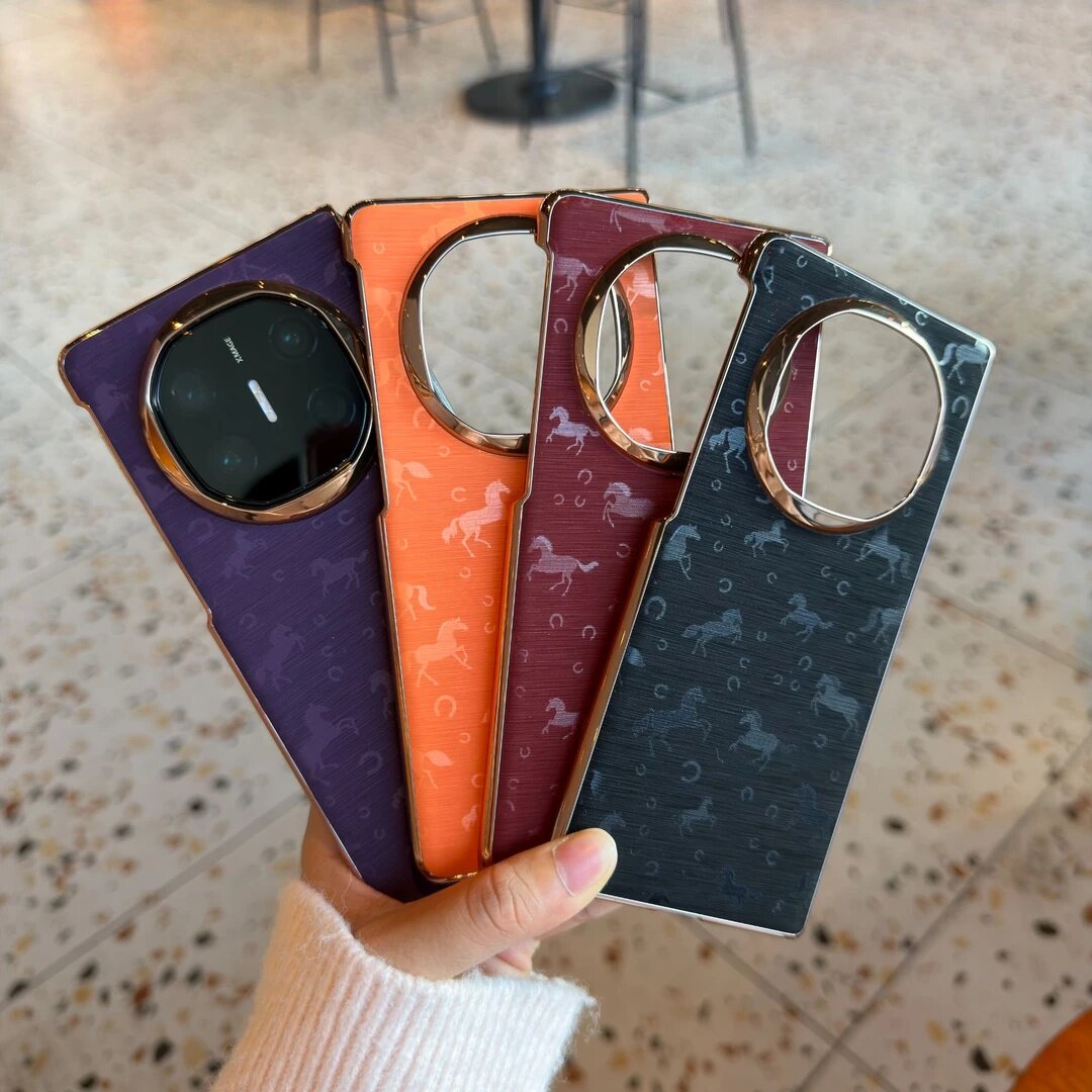 万马奔腾电镀边框适用华为matex6手机壳新款真皮x7典藏版折叠屏单后壳matex7新年红情侣外壳x5防摔高级保护套
