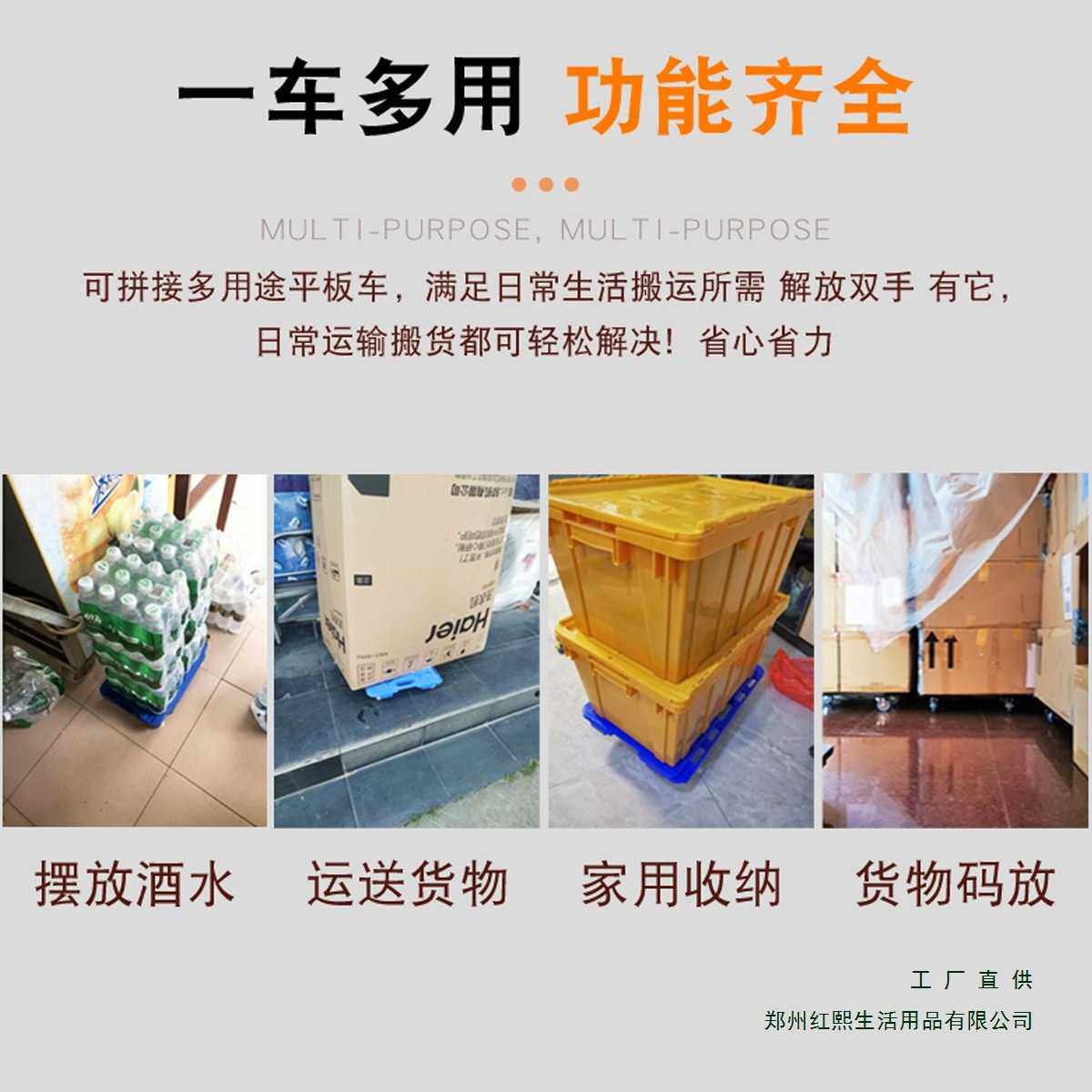 塑料乌龟车平板推车搬运拉货拖车移动衣柜家具洗衣机冰箱花盆托盘