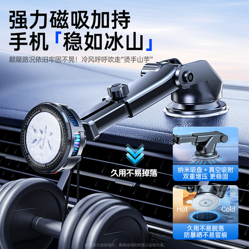 手机车载支架散热器一体汽车通用导航磁吸式半导体制冷降温神器滴滴网约车中控仪表台吸盘支撑架直播背夹风扇