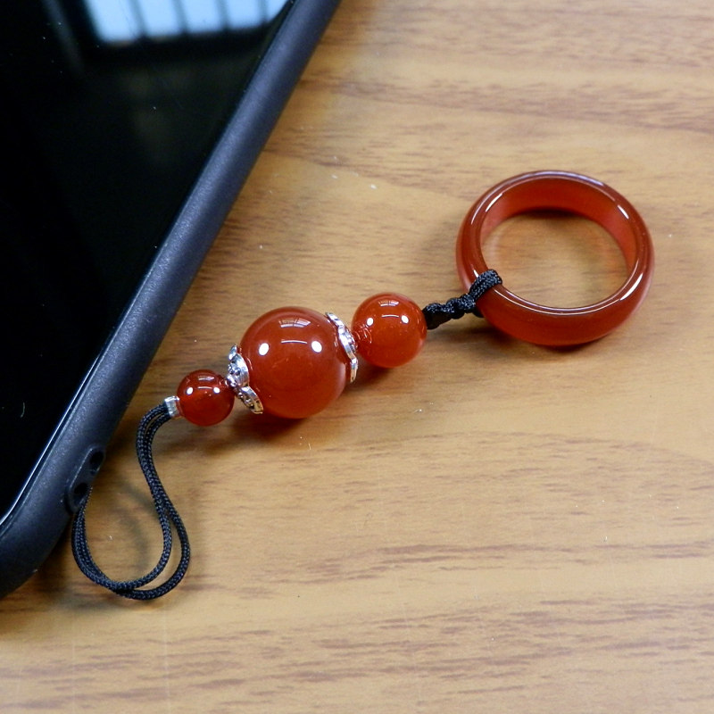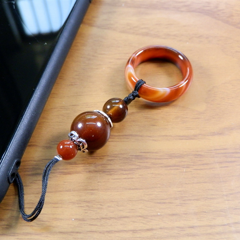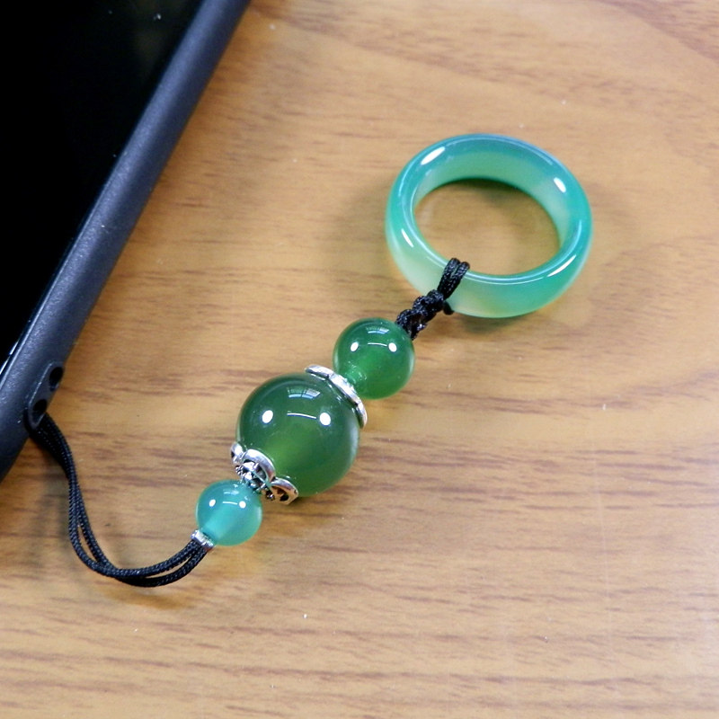 孔雀玛瑙手机挂绳短 天然玉石挂件男女款网红吊绳挂U盘钥匙链防丢