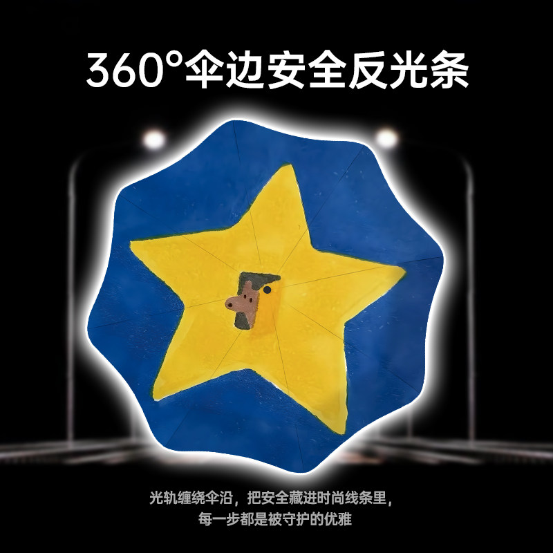 Cikatu西卡图星星儿童插画自动晴雨两用雨伞安全圆角防回弹折叠伞