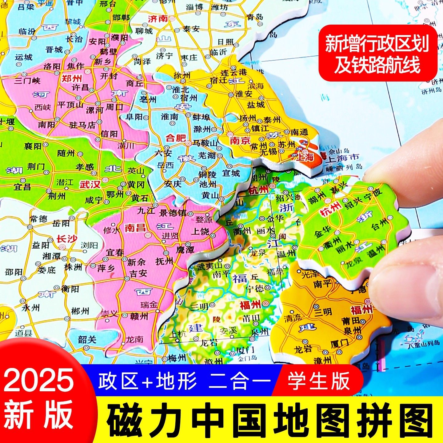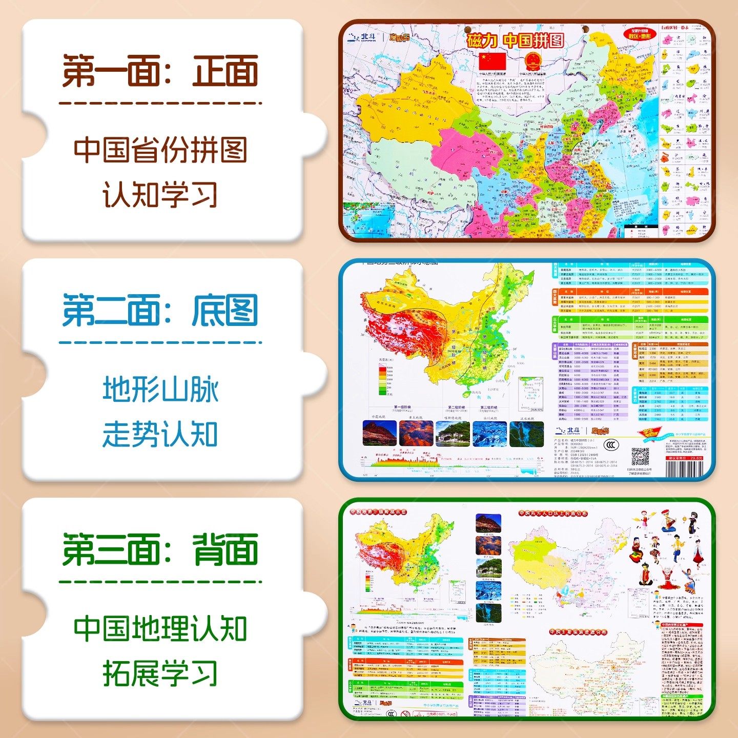中国地图拼图磁力世界地图大号加厚磁性中小学生地理认知玩具