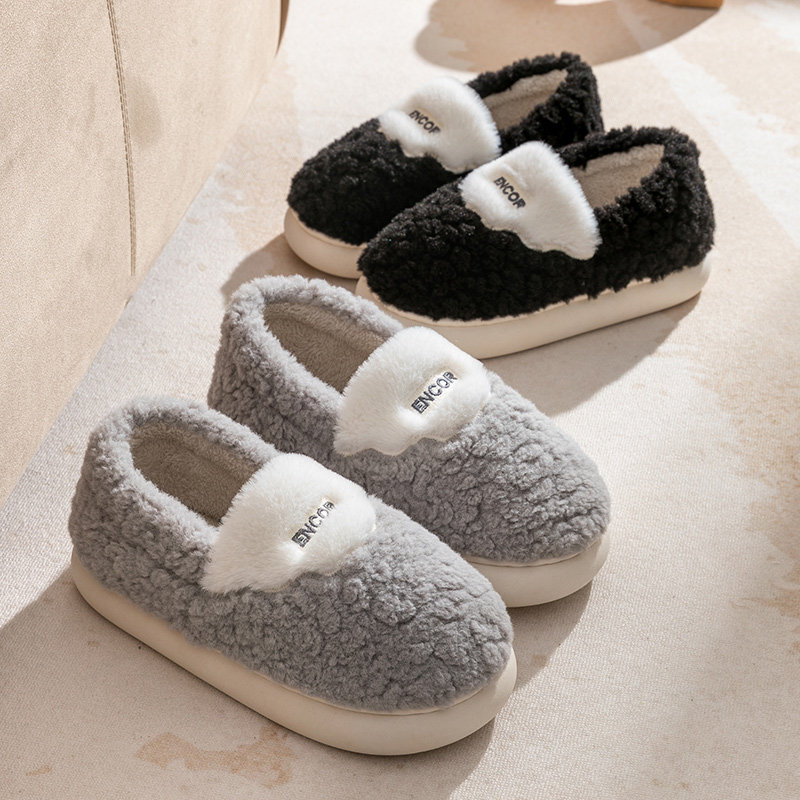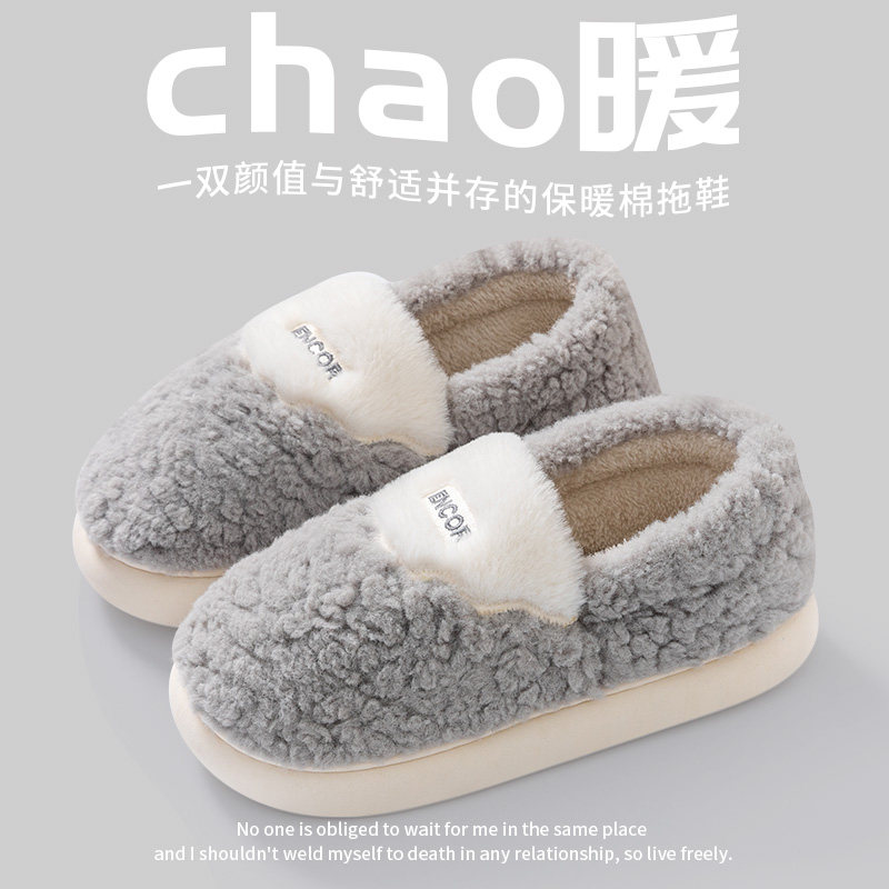 2026新款翻半包跟棉拖加绒保暖情侣外穿毛毛绒厚底防滑居家棉拖鞋
