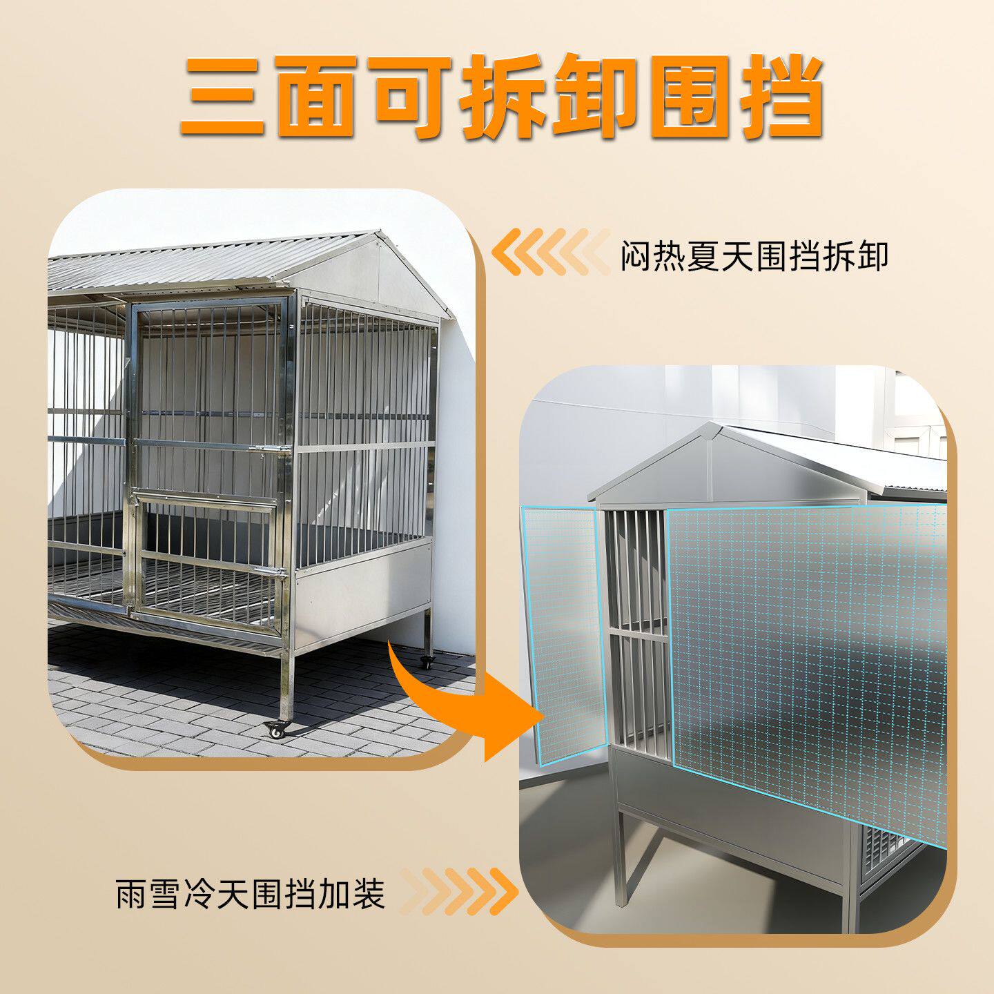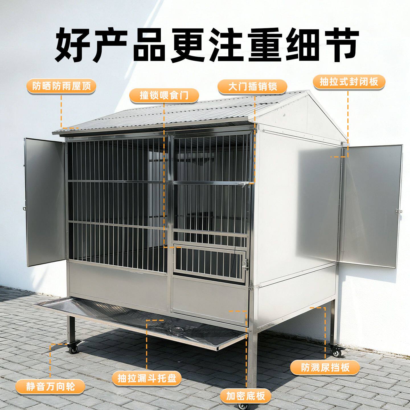 不锈钢双笼位狗笼室外冬季御寒挡雨大型犬子母狗笼带厕所猛犬狗笼