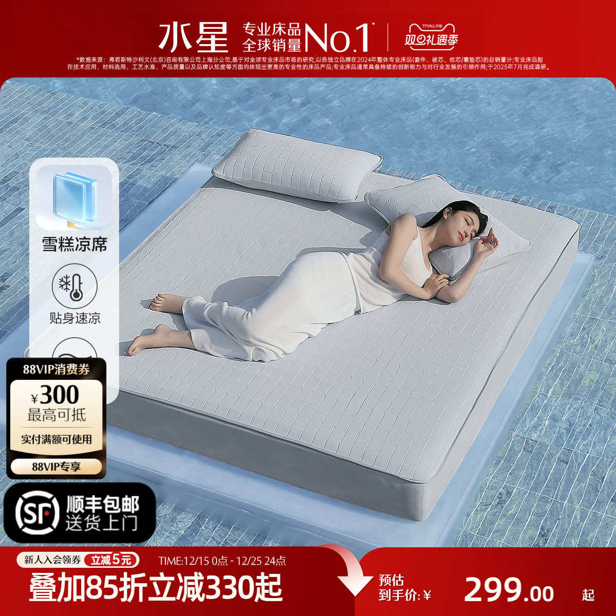 水星家纺凉感雪糕席5代可水洗凉席Q弹空调软席子A类裸睡床笠夏季