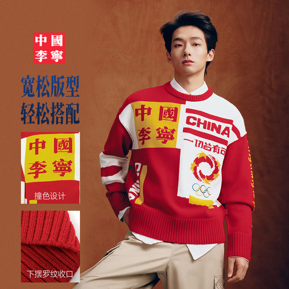 中国李宁编织衫男士女士2026新款情侣上衣春季毛衣运动服
