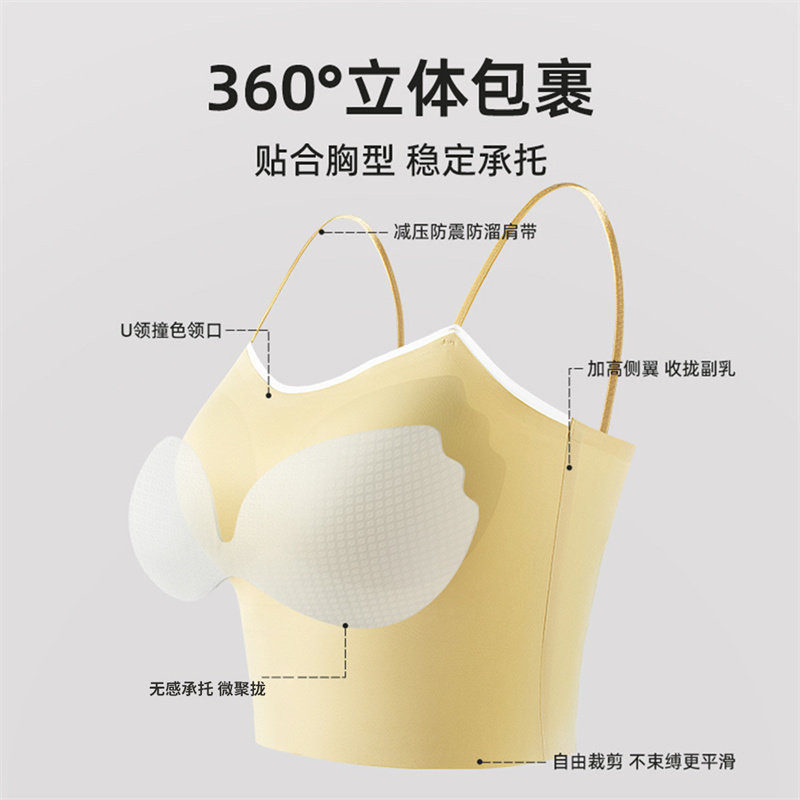 半练吊带背心女免穿文胸内搭遮副乳美背带胸垫一体式白色打底外穿