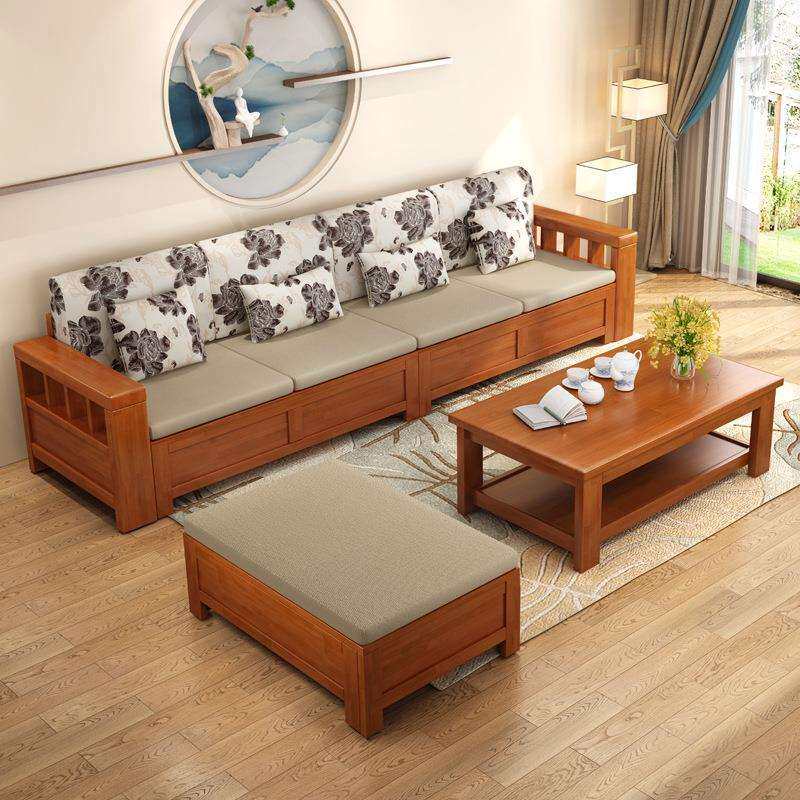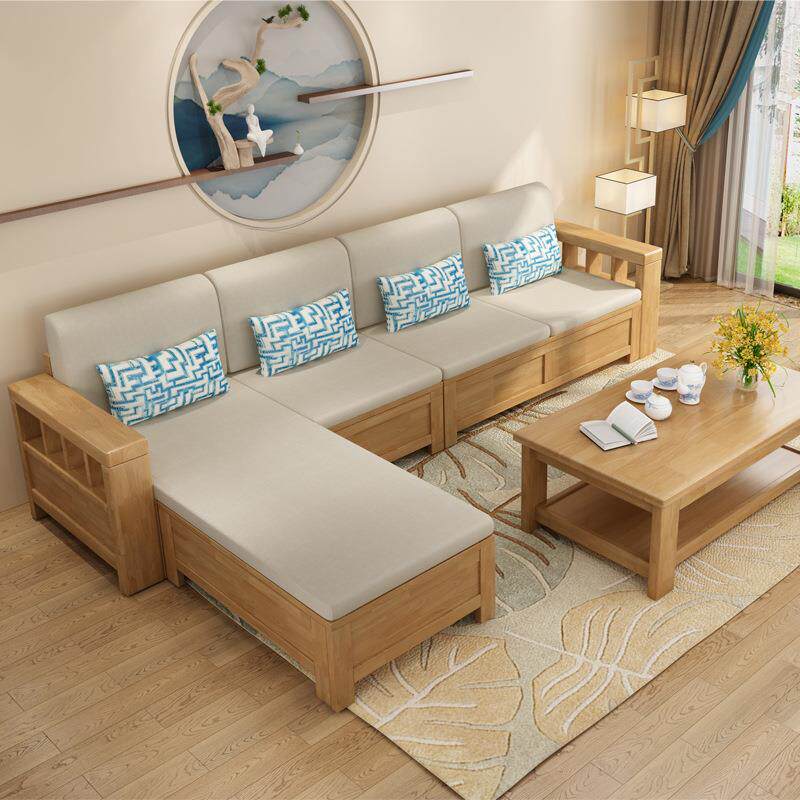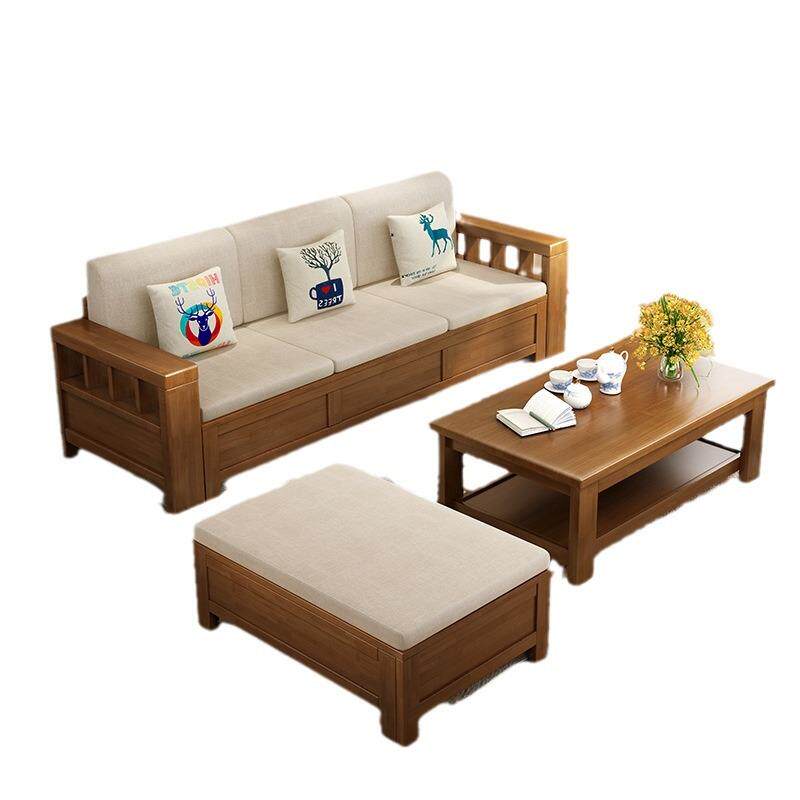 中式布艺实木沙发组合大小户型办公室多功能沙发床厂家直销家具