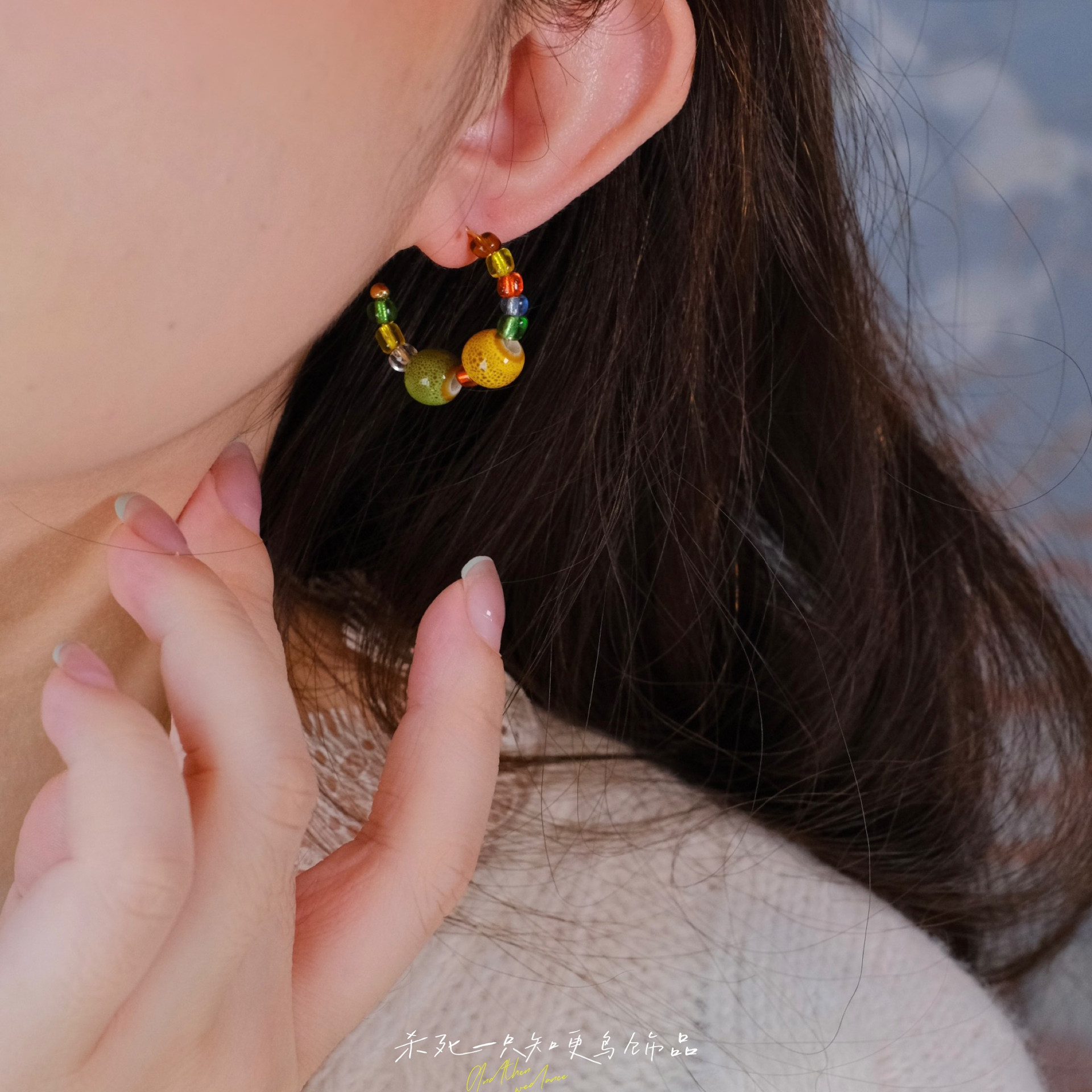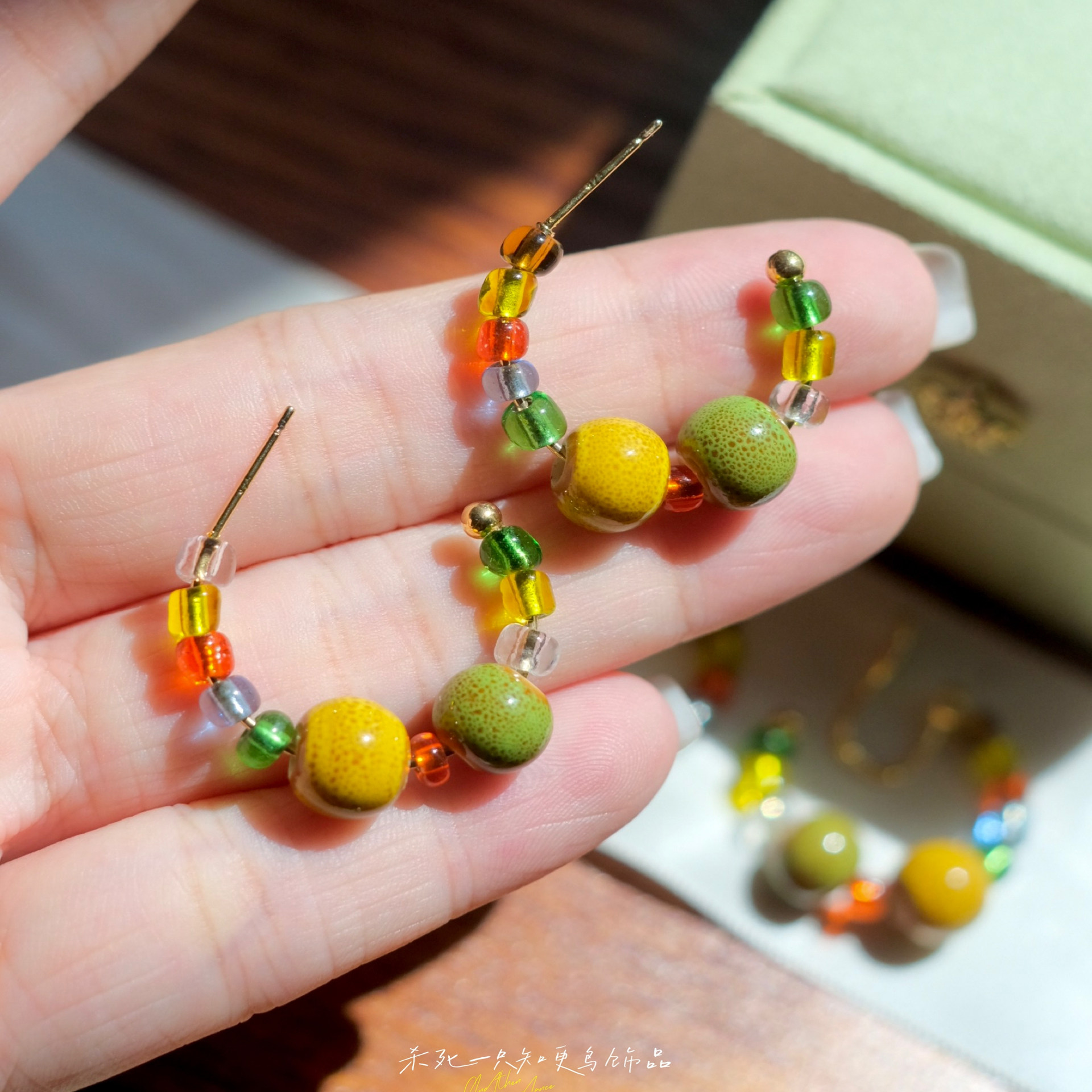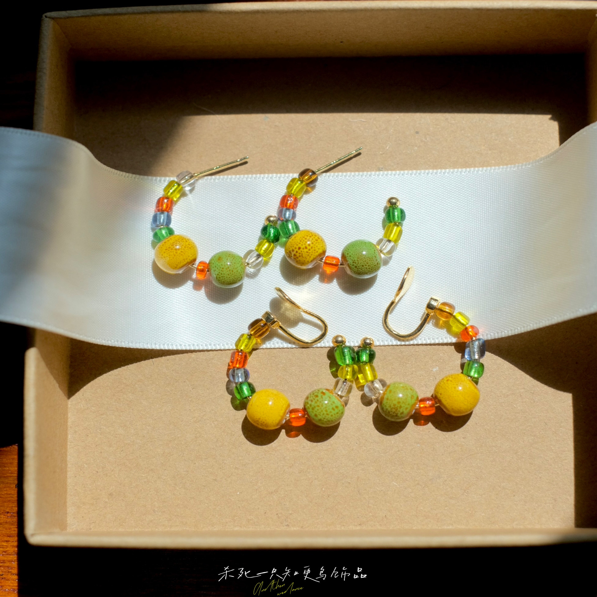 《冬日小森林》秋日彩色多巴胺少女陶瓷串珠C形圆圈耳环耳夹耳饰