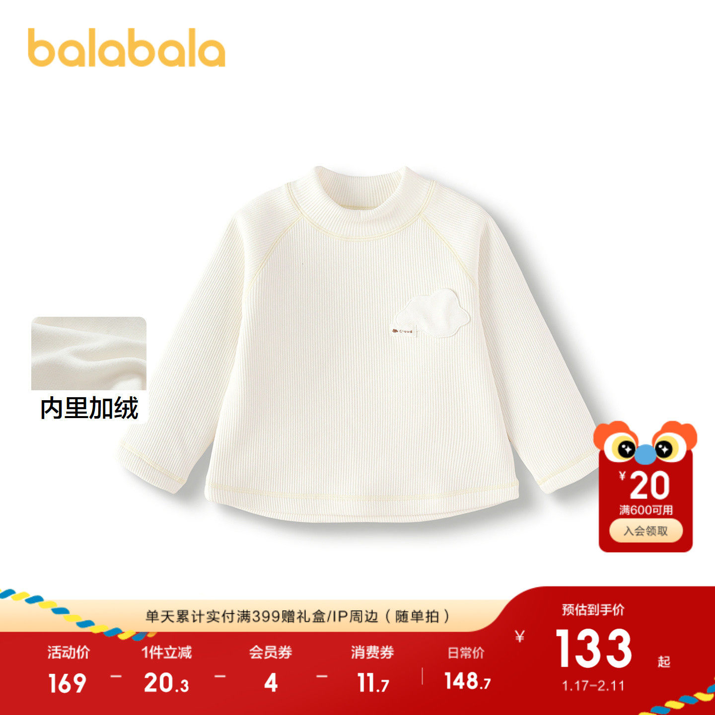 【商场同款】巴拉巴拉宝宝t恤加绒内搭打底衫秋冬2025新款女童装