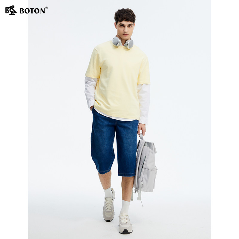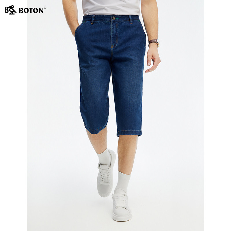 [冰爽]波顿2025夏季新款男士中长款牛仔短裤五七分高端美式裤子