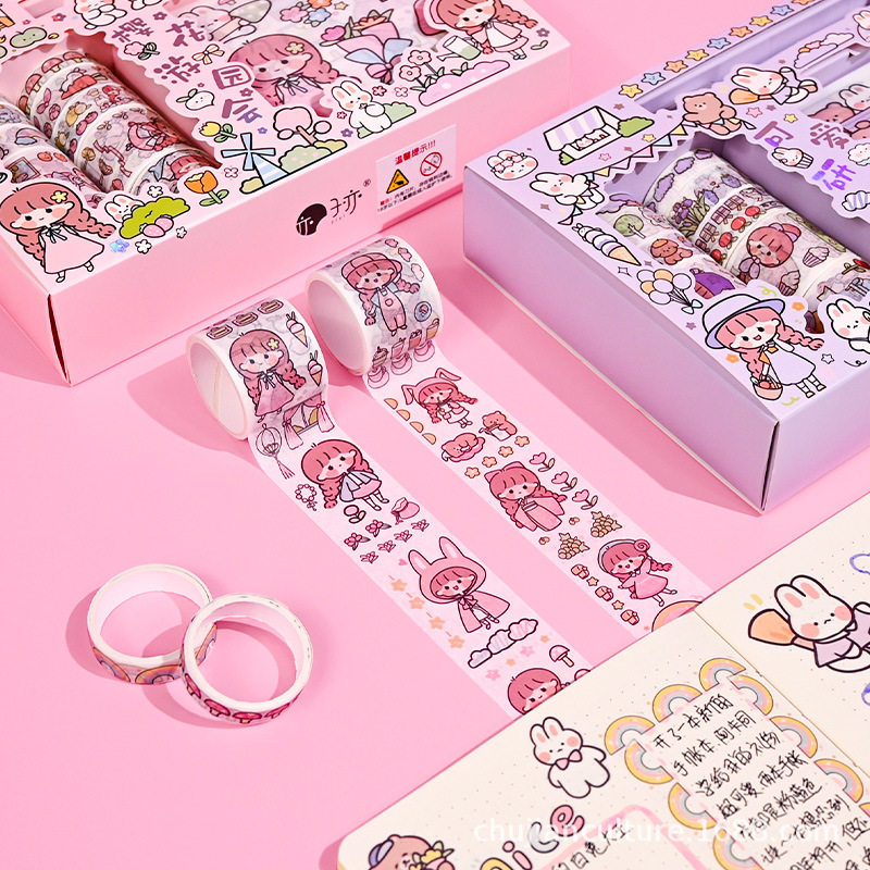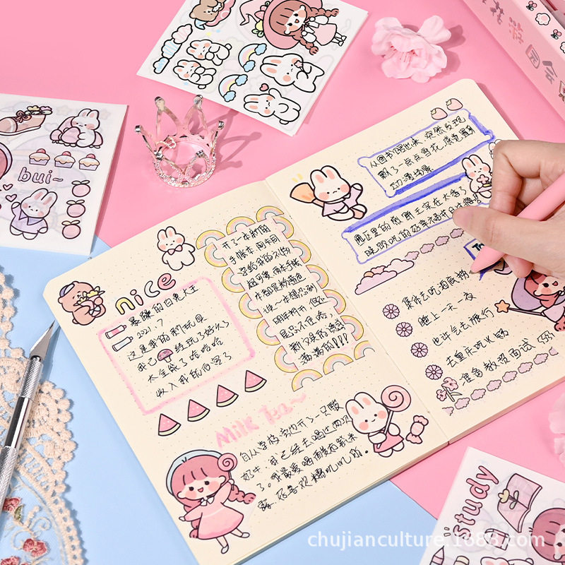 栗子君手账贴纸套装手帐胶带贴纸儿童少女系可爱卡通贴纸少女心学生奖励贴纸素材手账本胶卷女孩材料礼盒